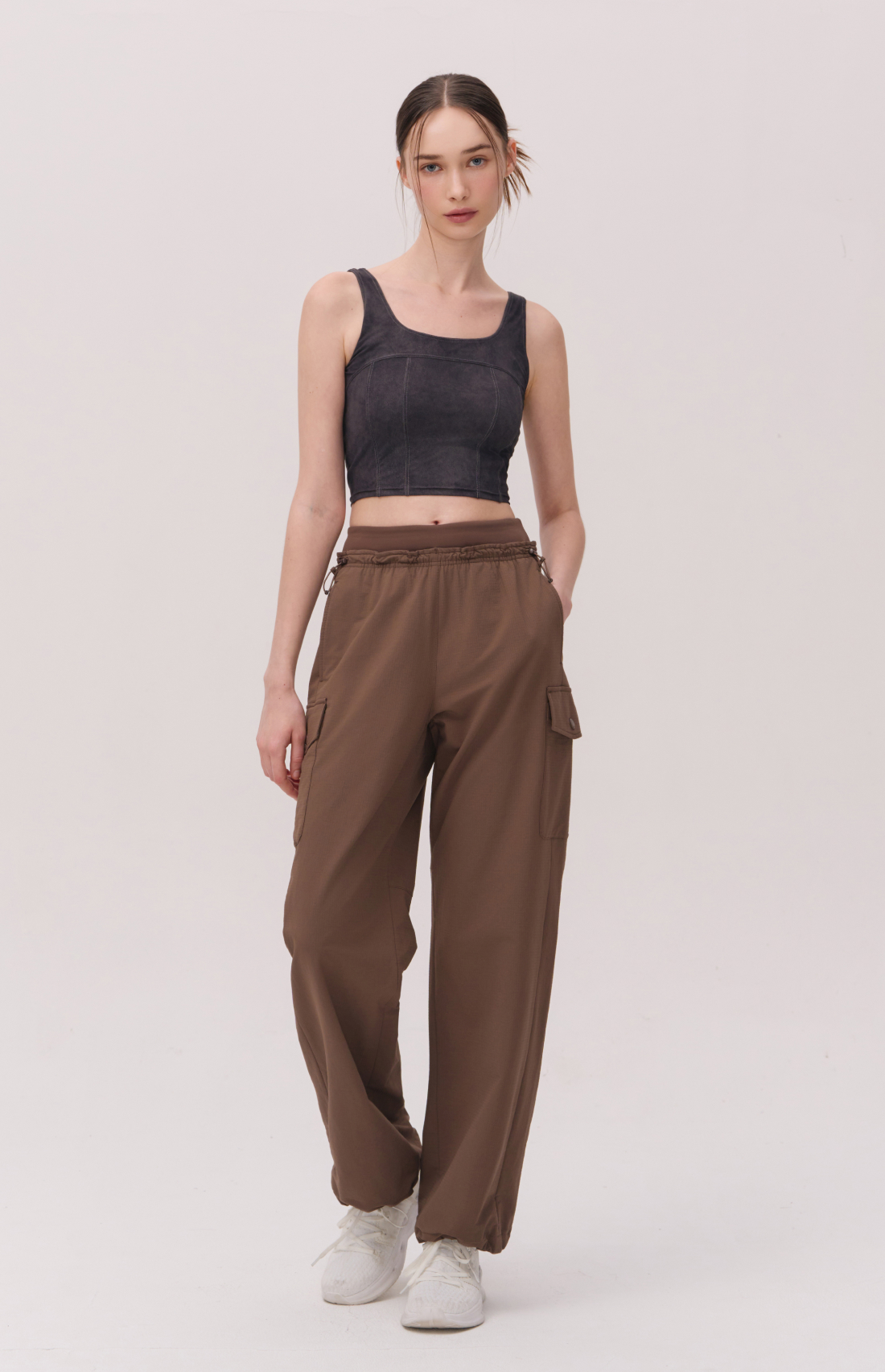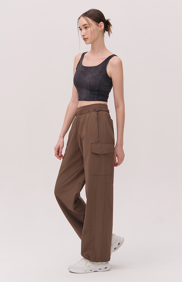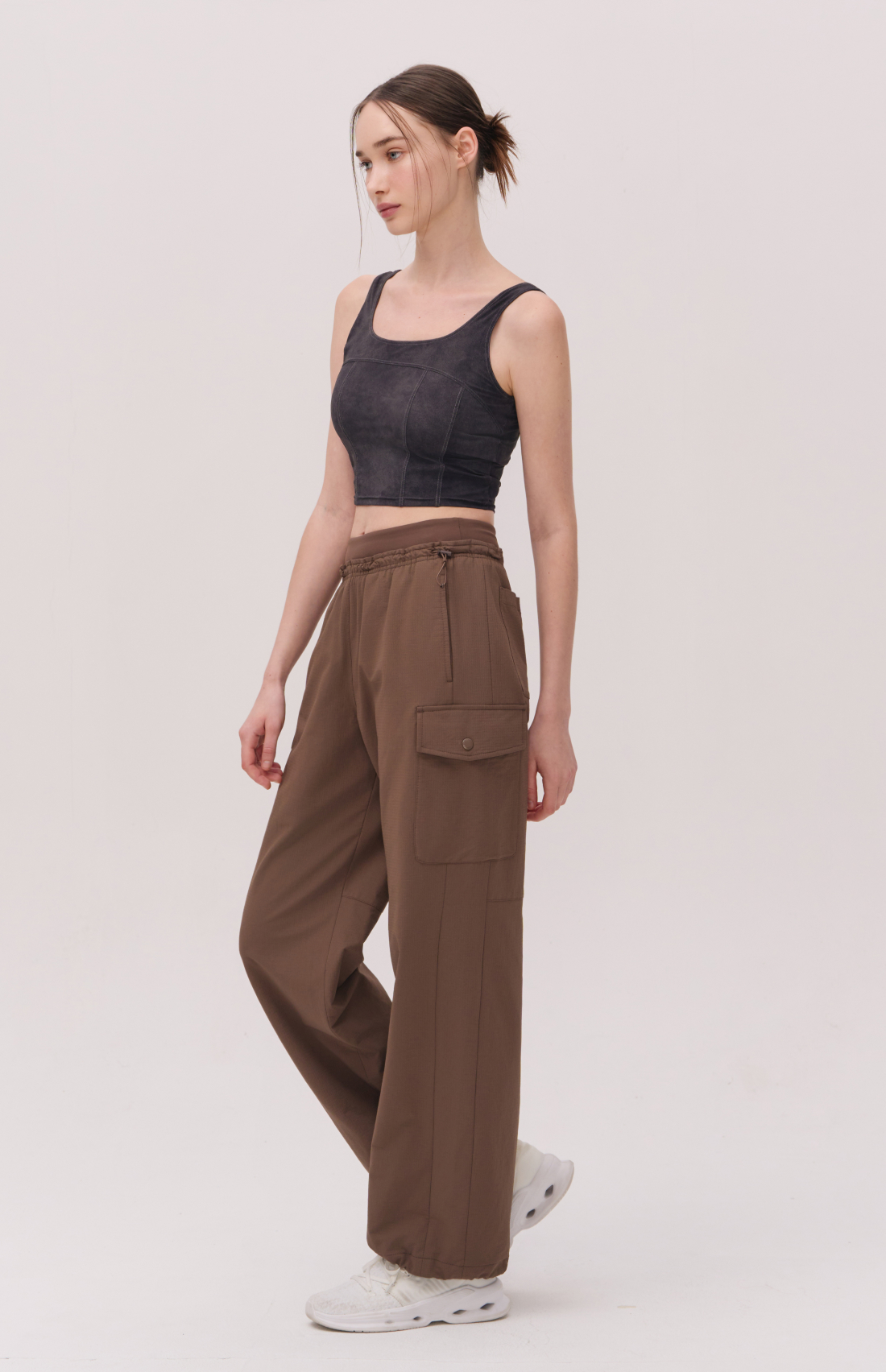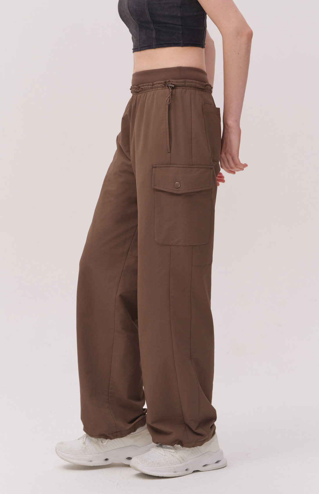 BRUSHED DOUBLE-WAIST PARACHUTE PANTS