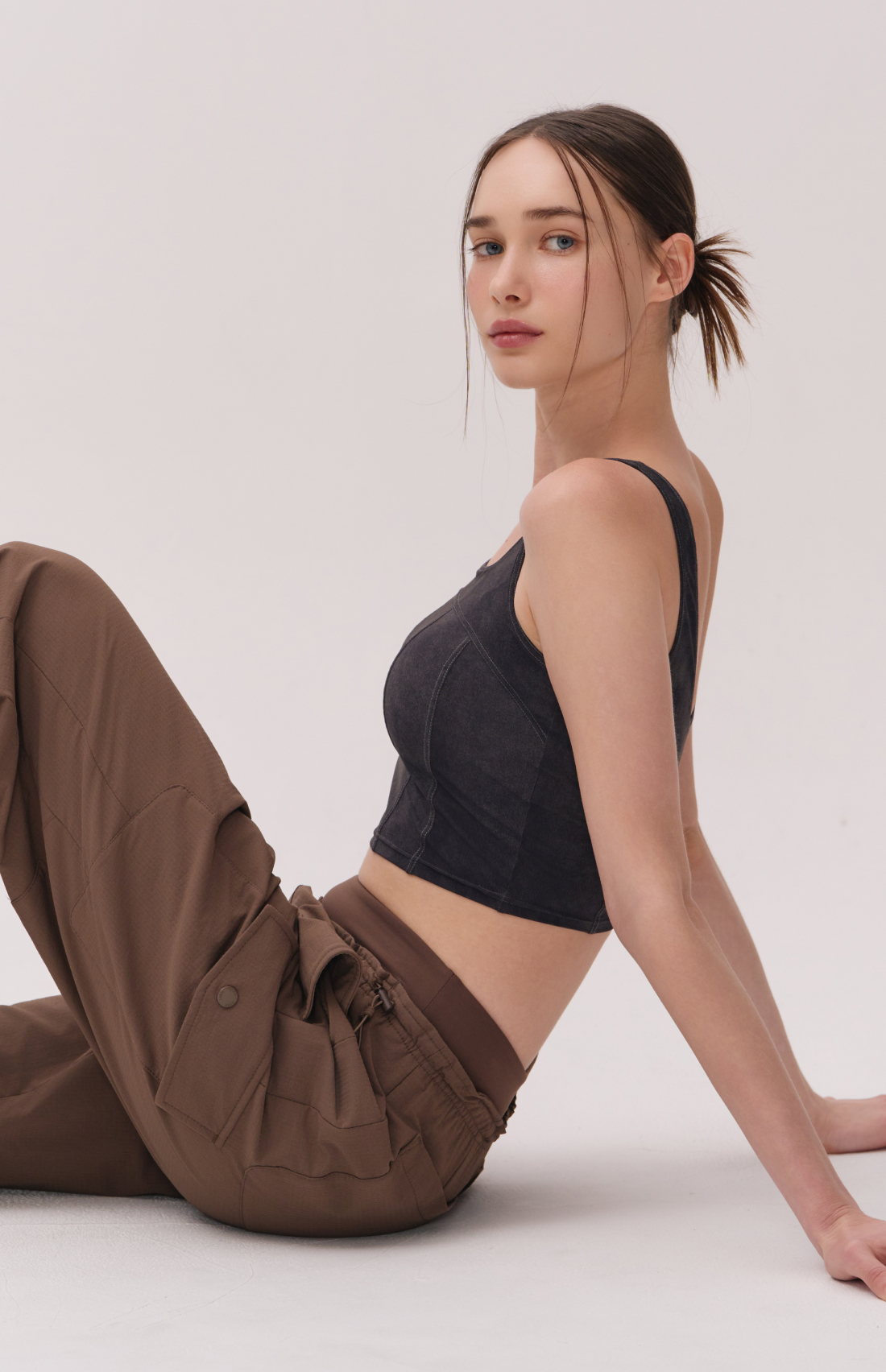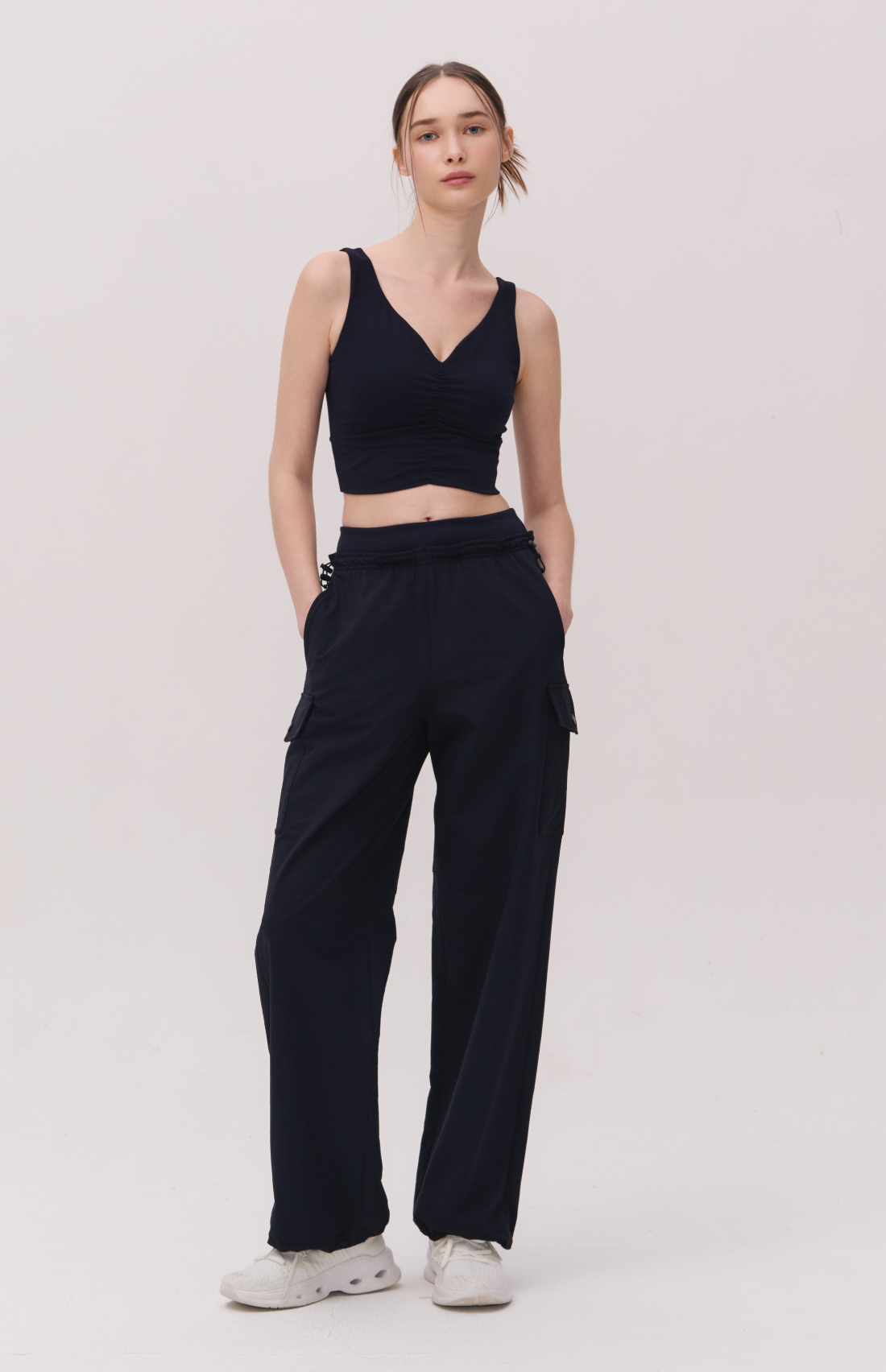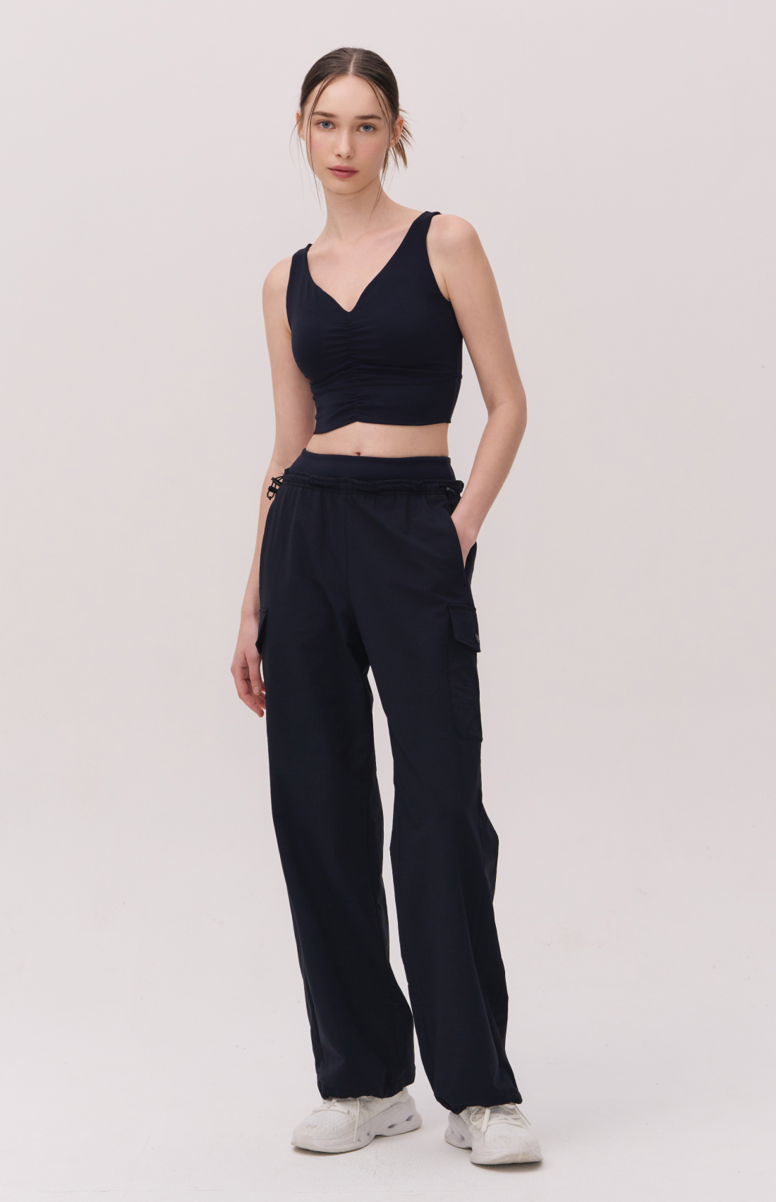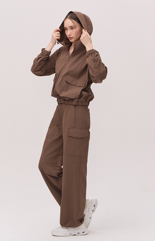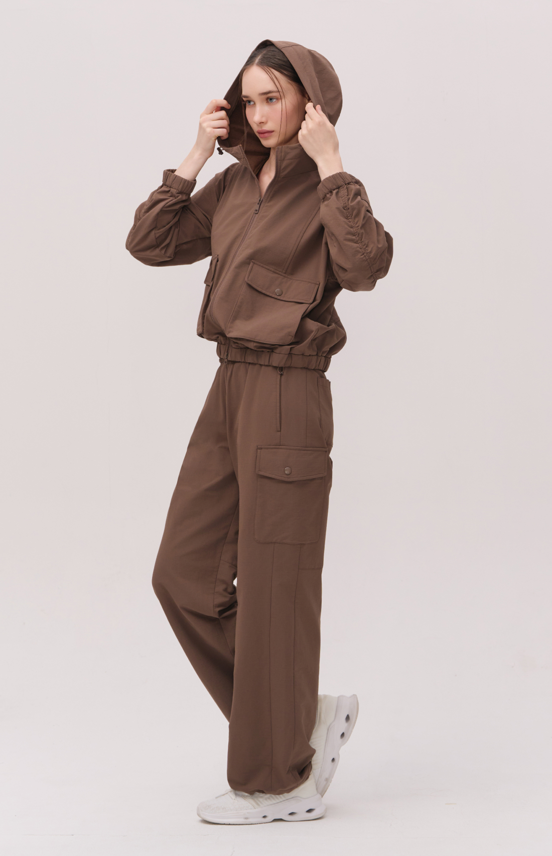 BRUSHED DOUBLE-WAIST PARACHUTE PANTS