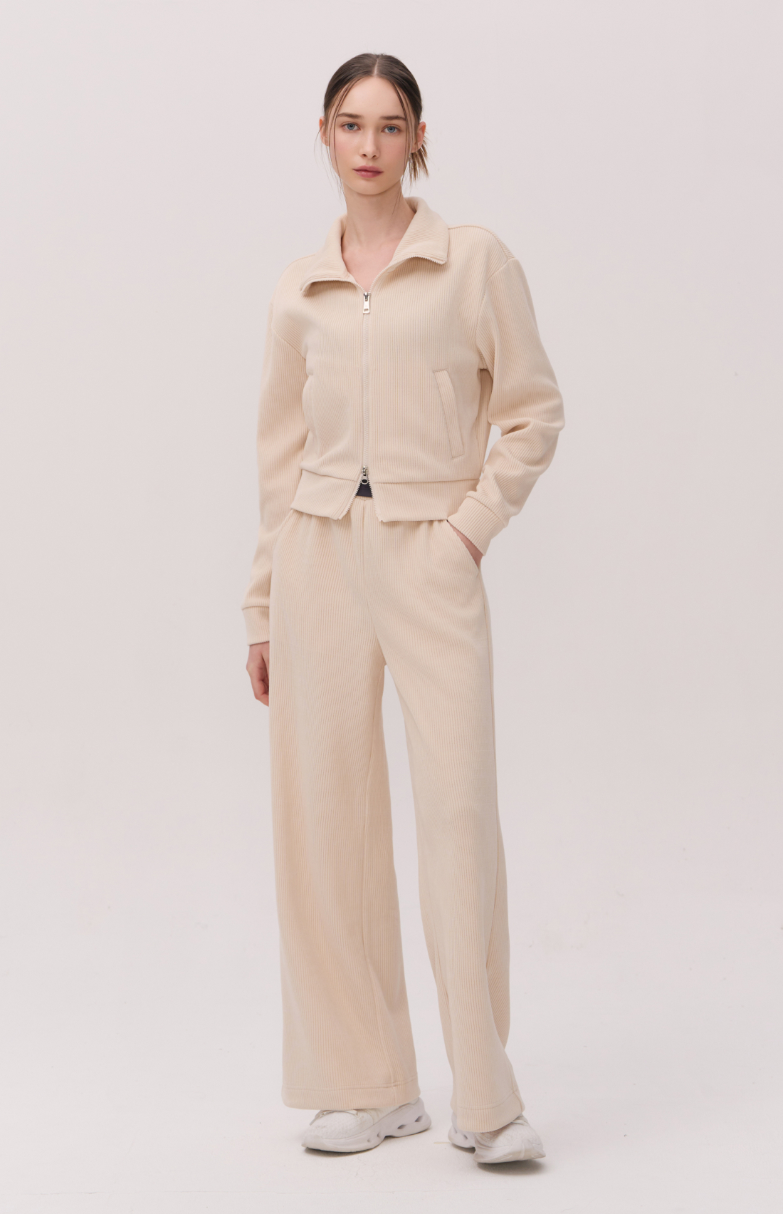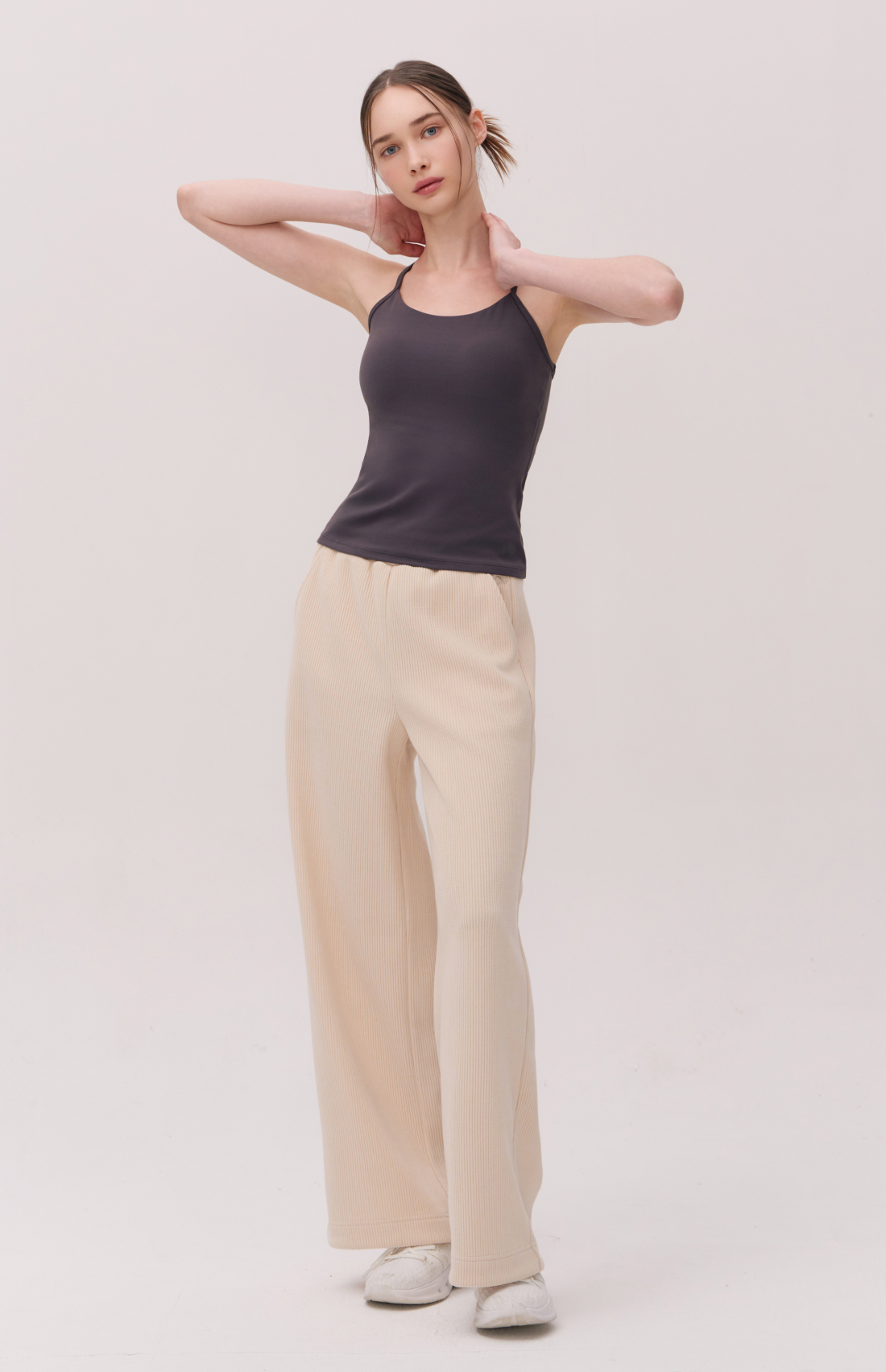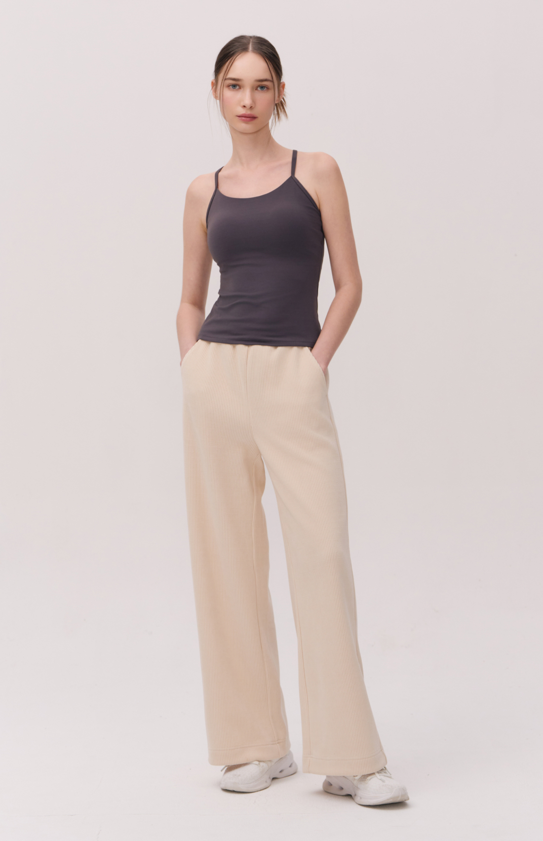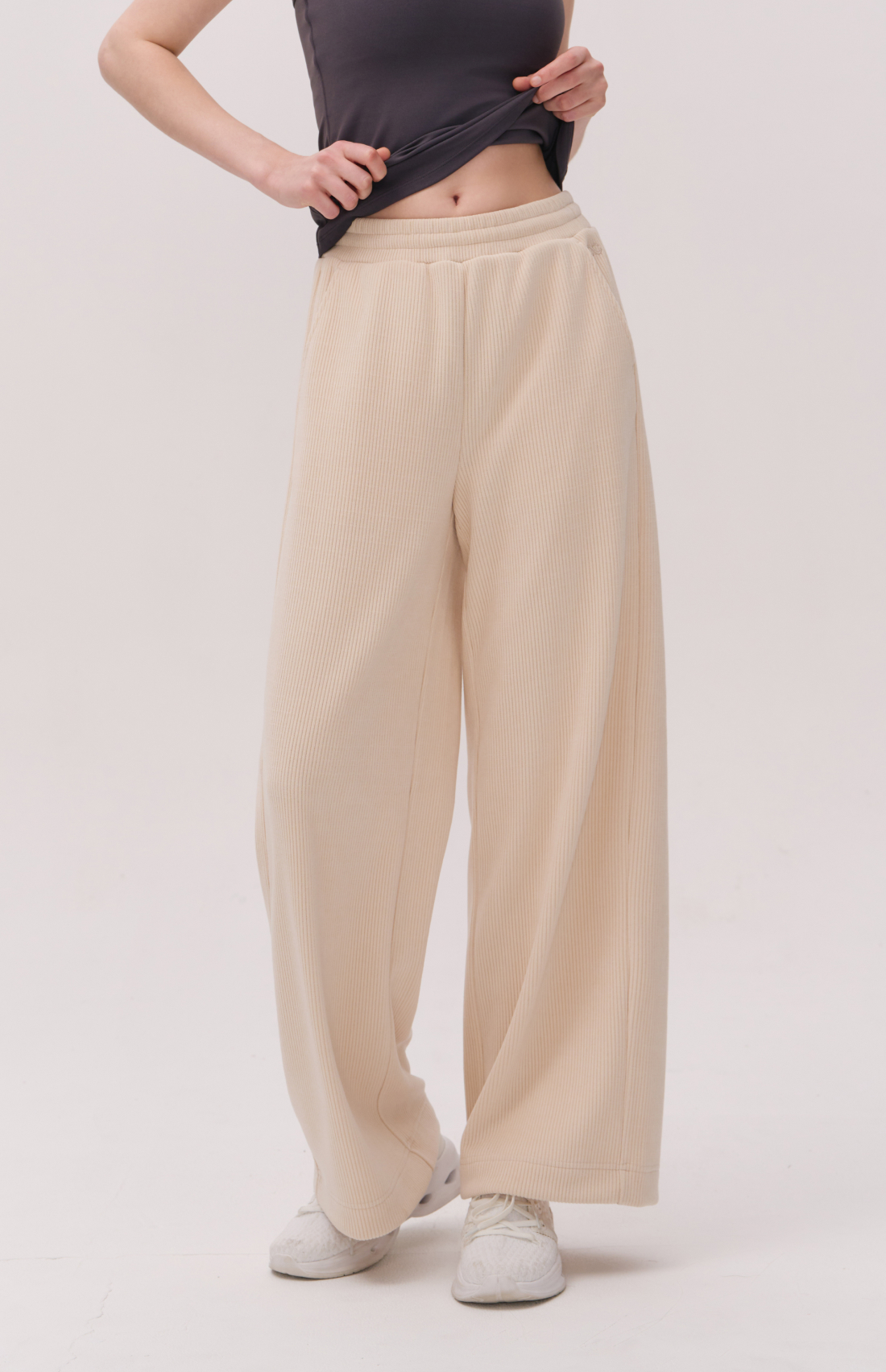 WIDE-RIB VELVET WIDE-FIT ELASTIC PANTS
