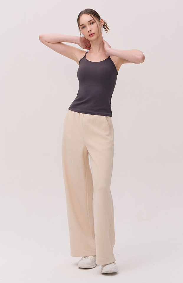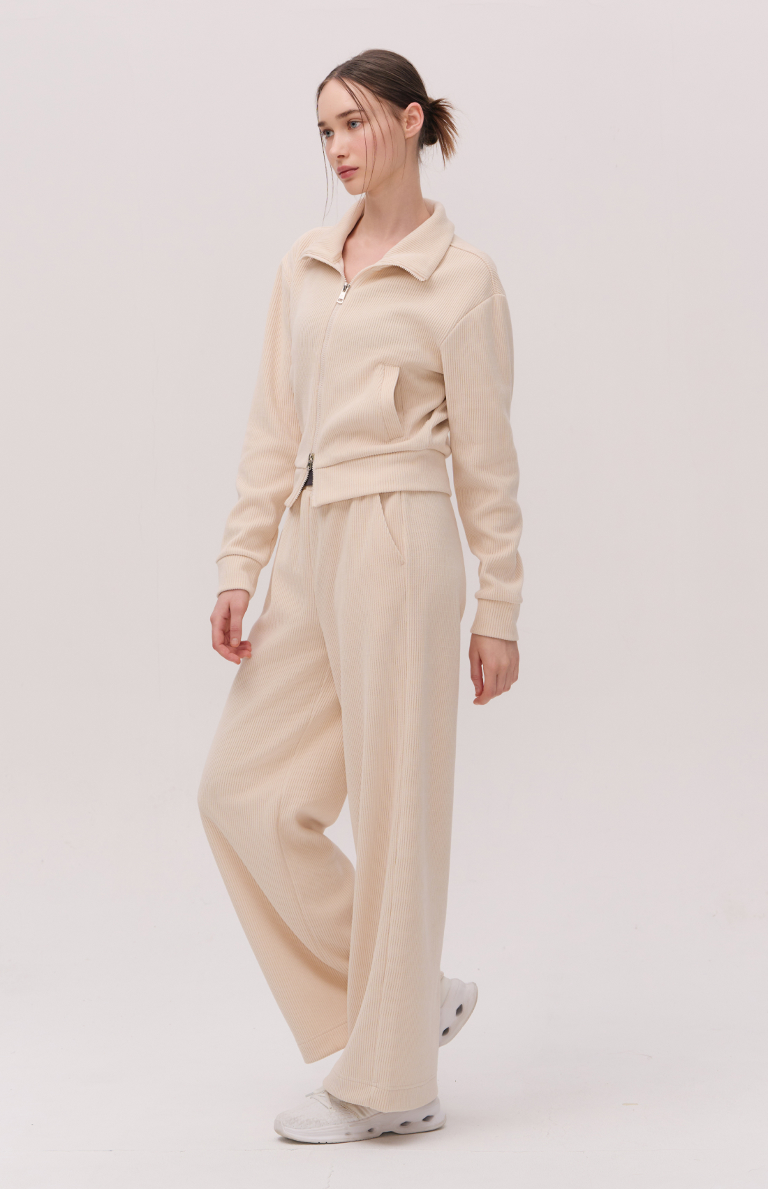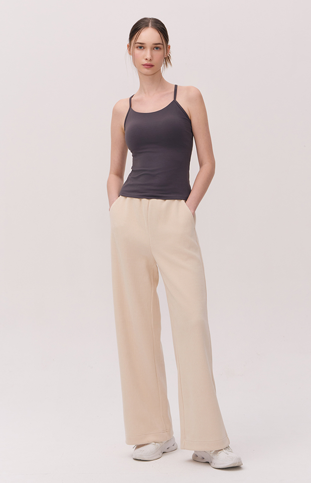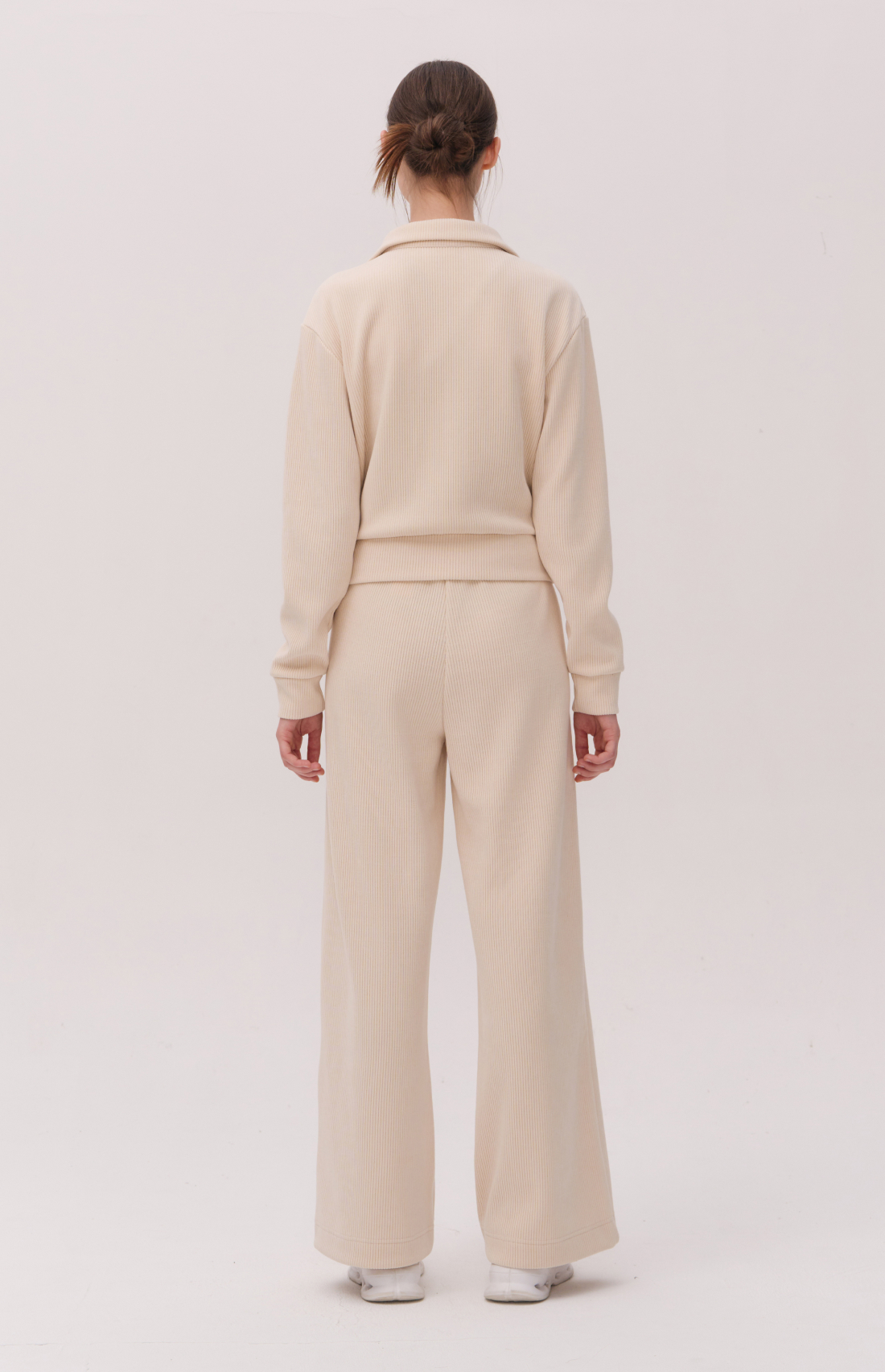 WIDE-RIB VELVET WIDE-FIT ELASTIC PANTS