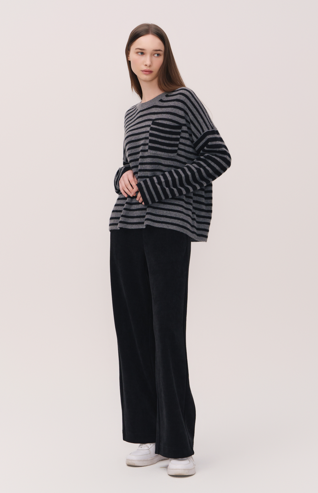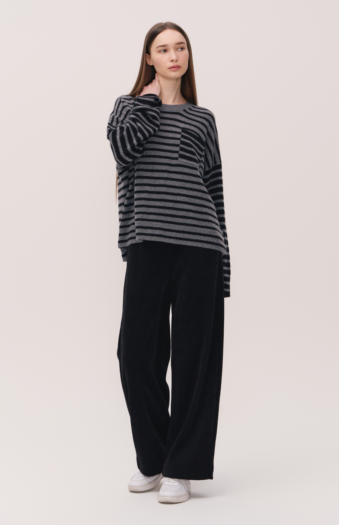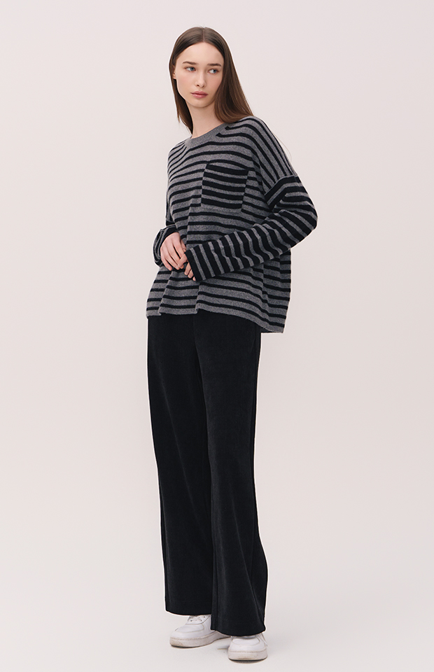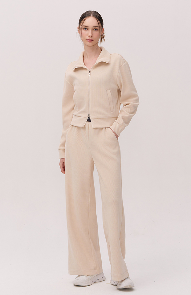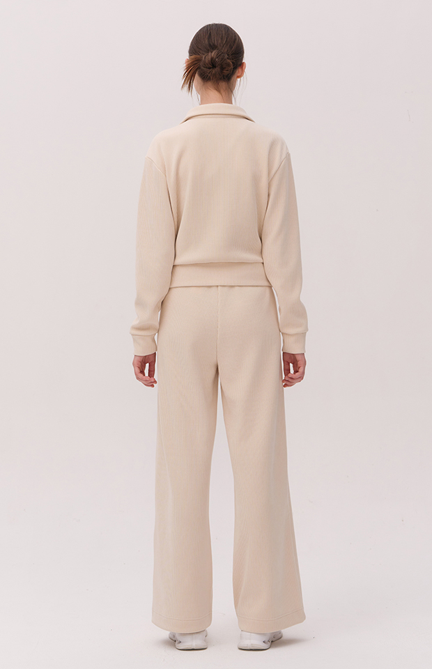 WIDE-RIB VELVET WIDE-FIT ELASTIC PANTS