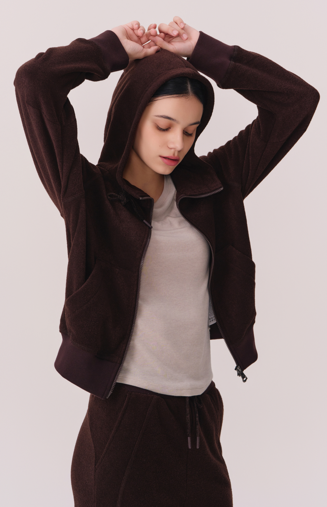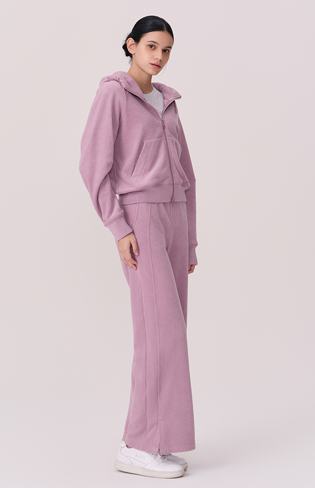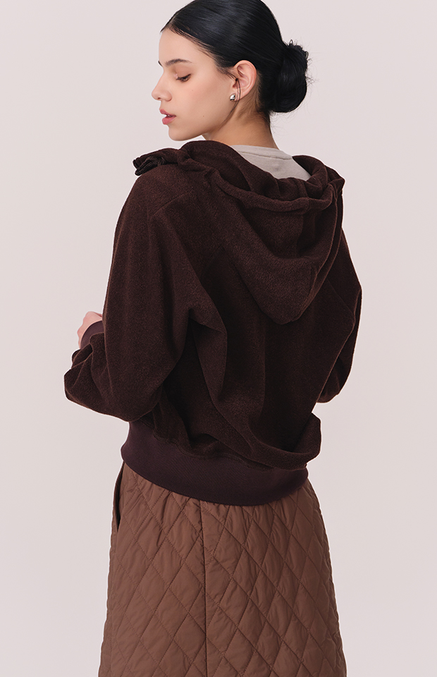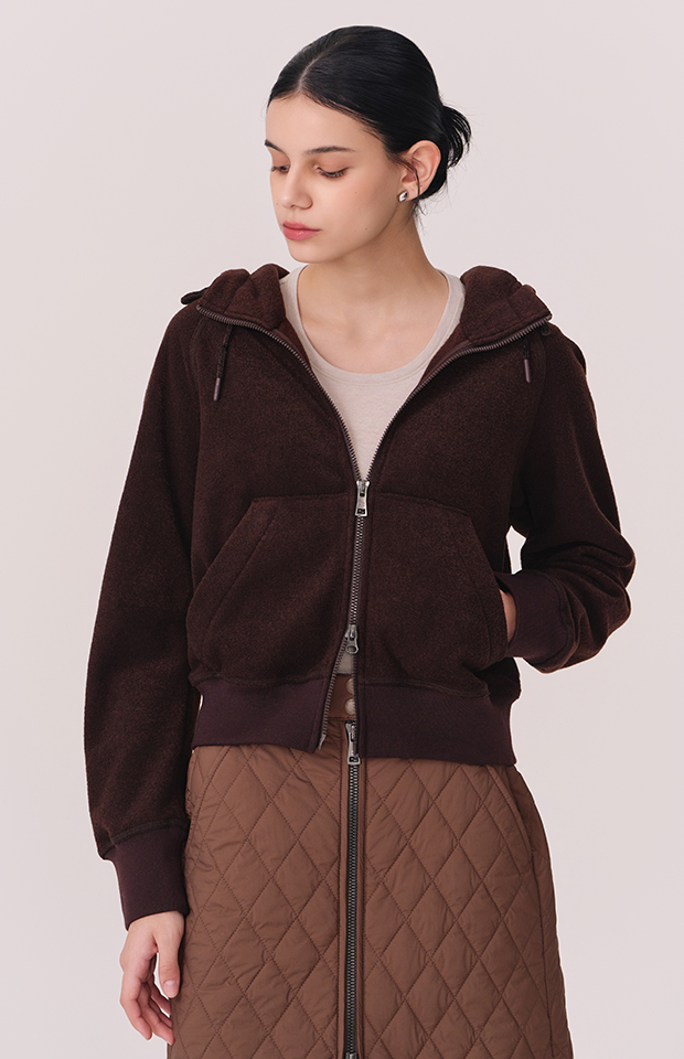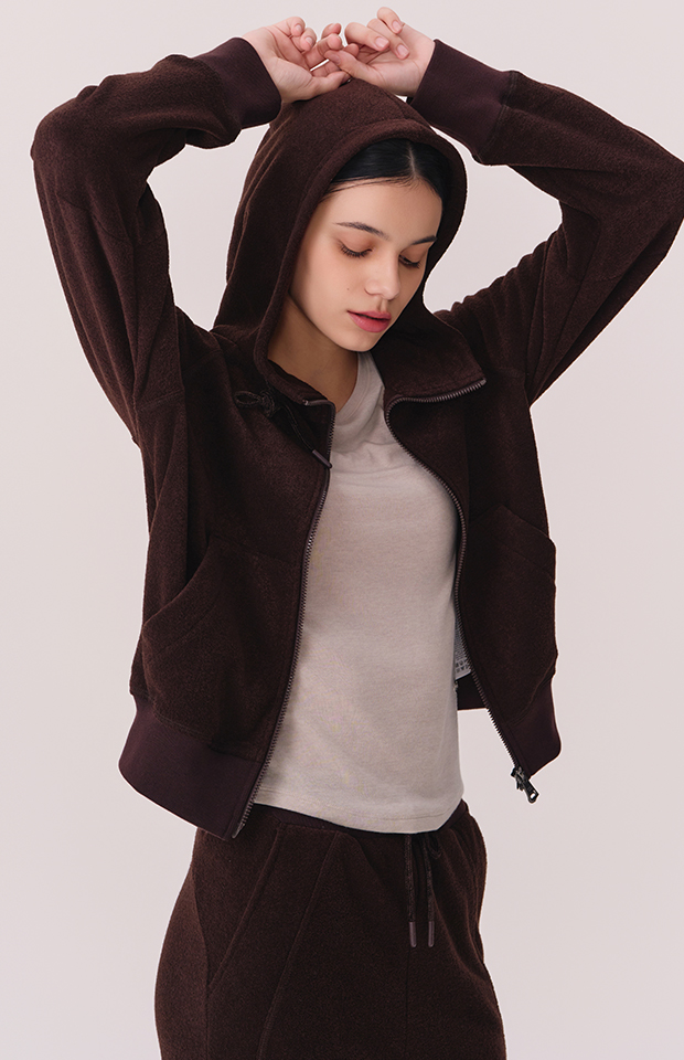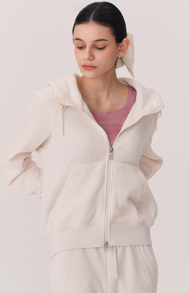 TERRY BRUSHED HOODED ZIP-UP JACKET