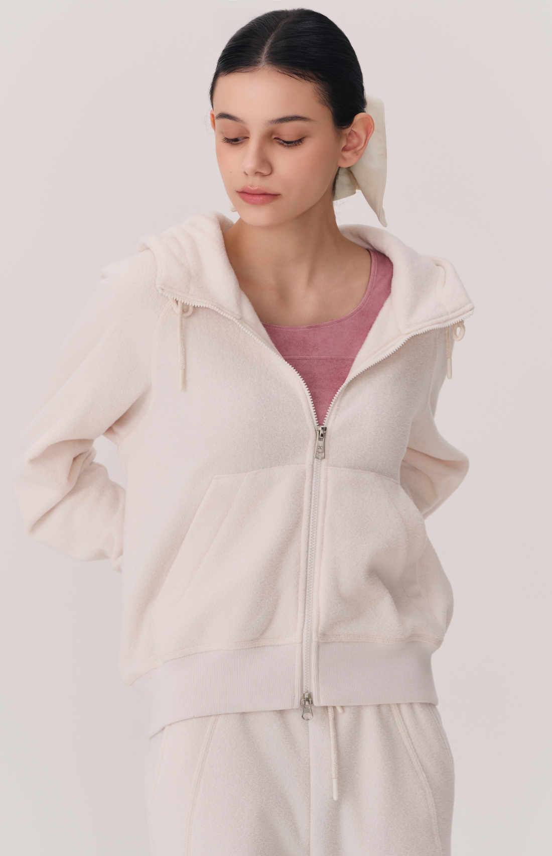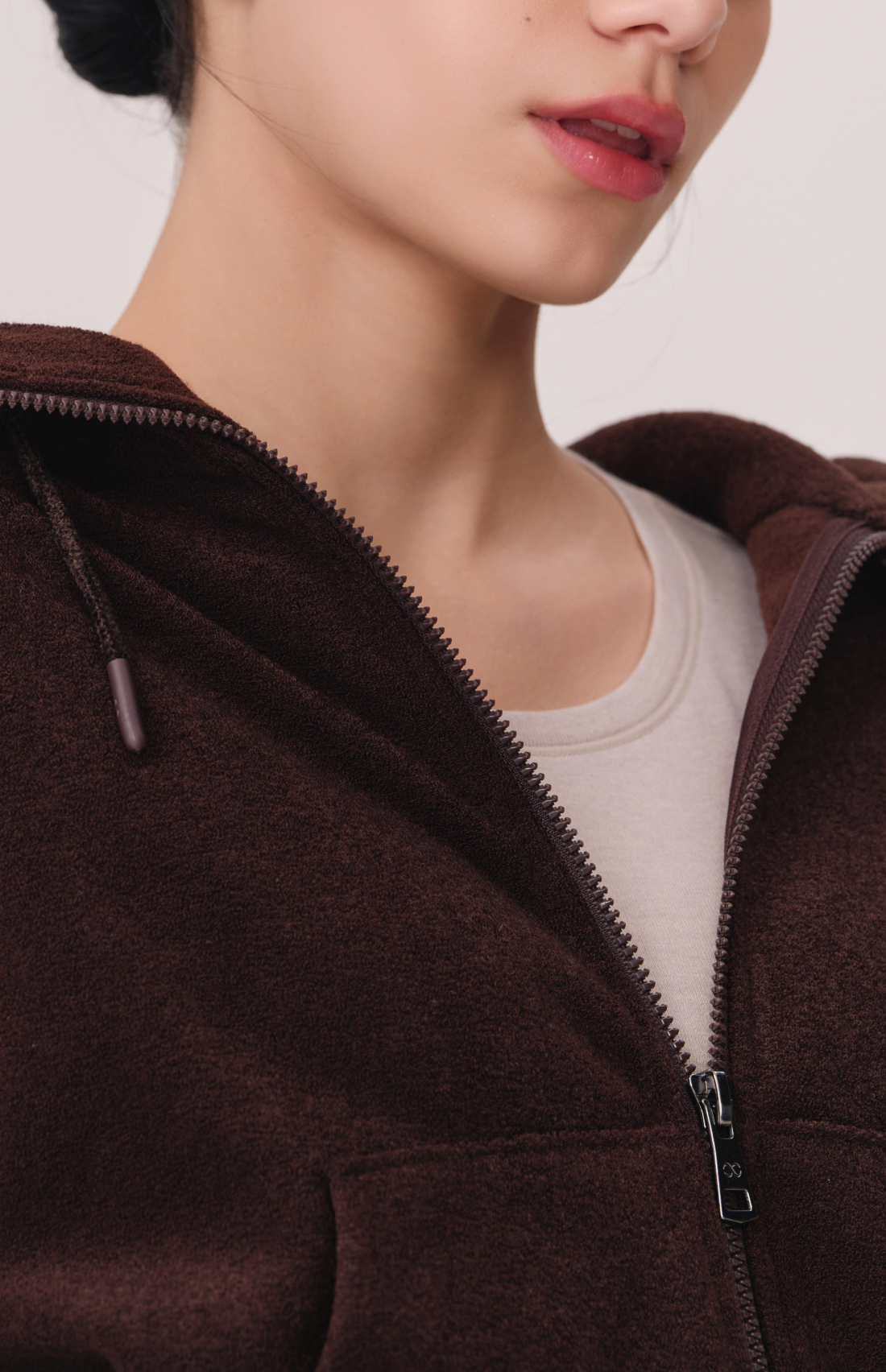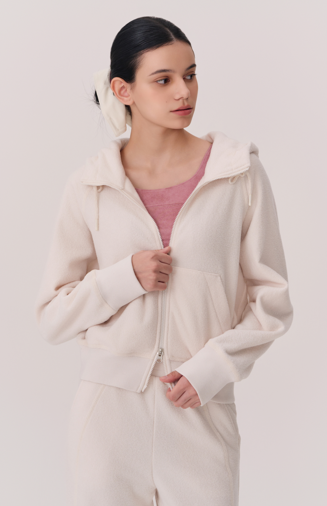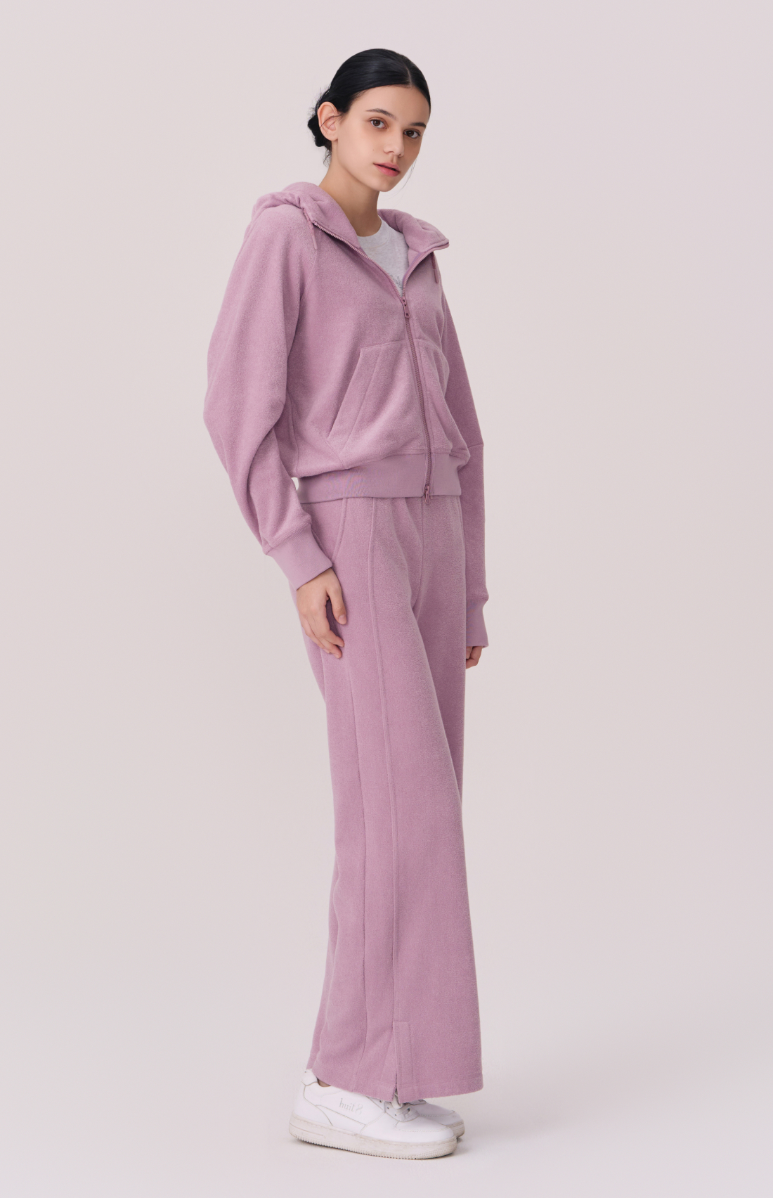 TERRY BRUSHED HOODED ZIP-UP JACKET