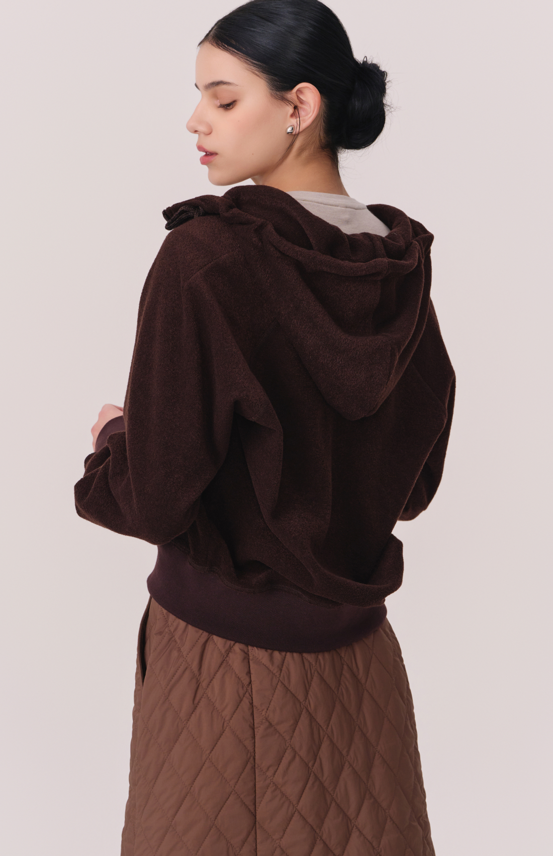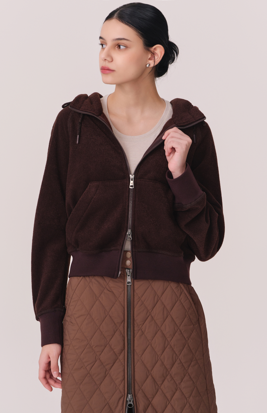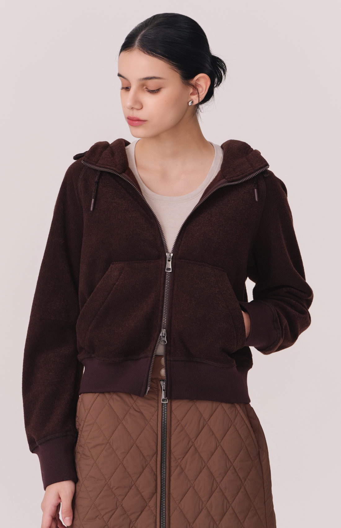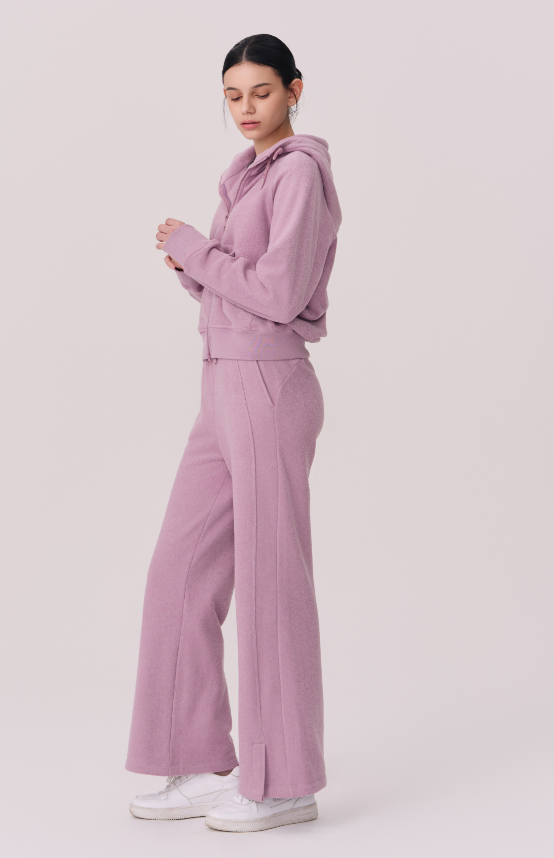 TERRY BRUSHED HOODED ZIP-UP JACKET