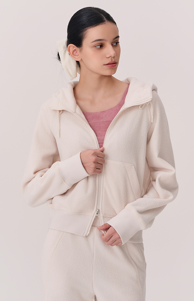 TERRY BRUSHED HOODED ZIP-UP JACKET