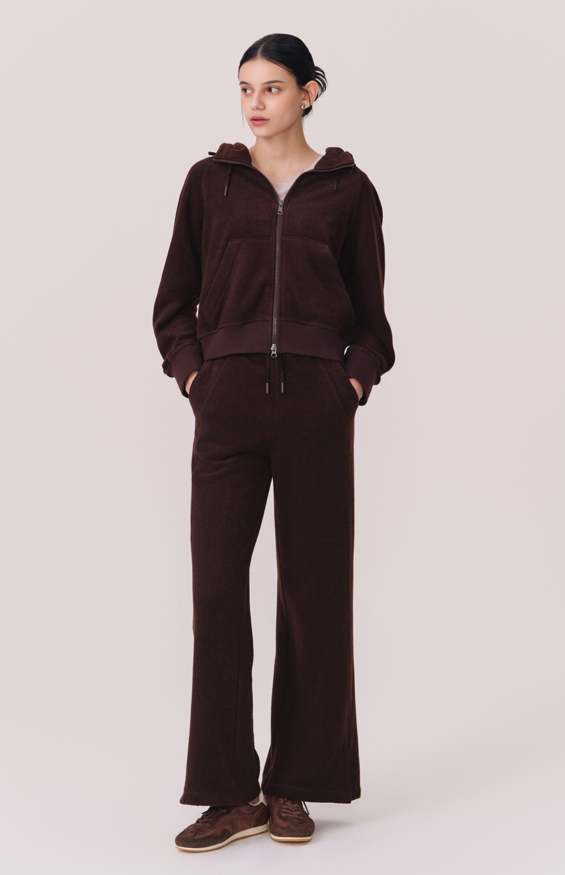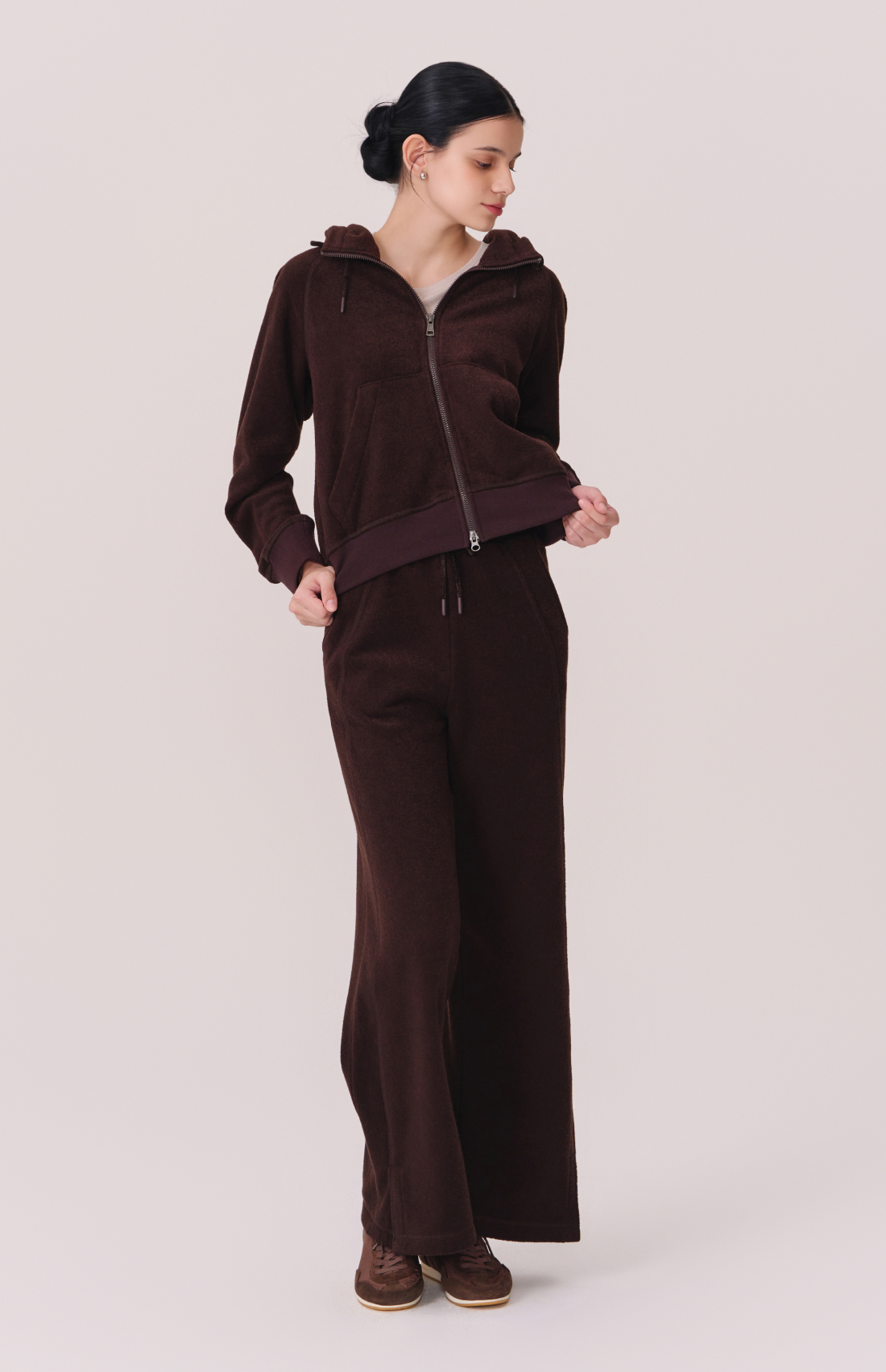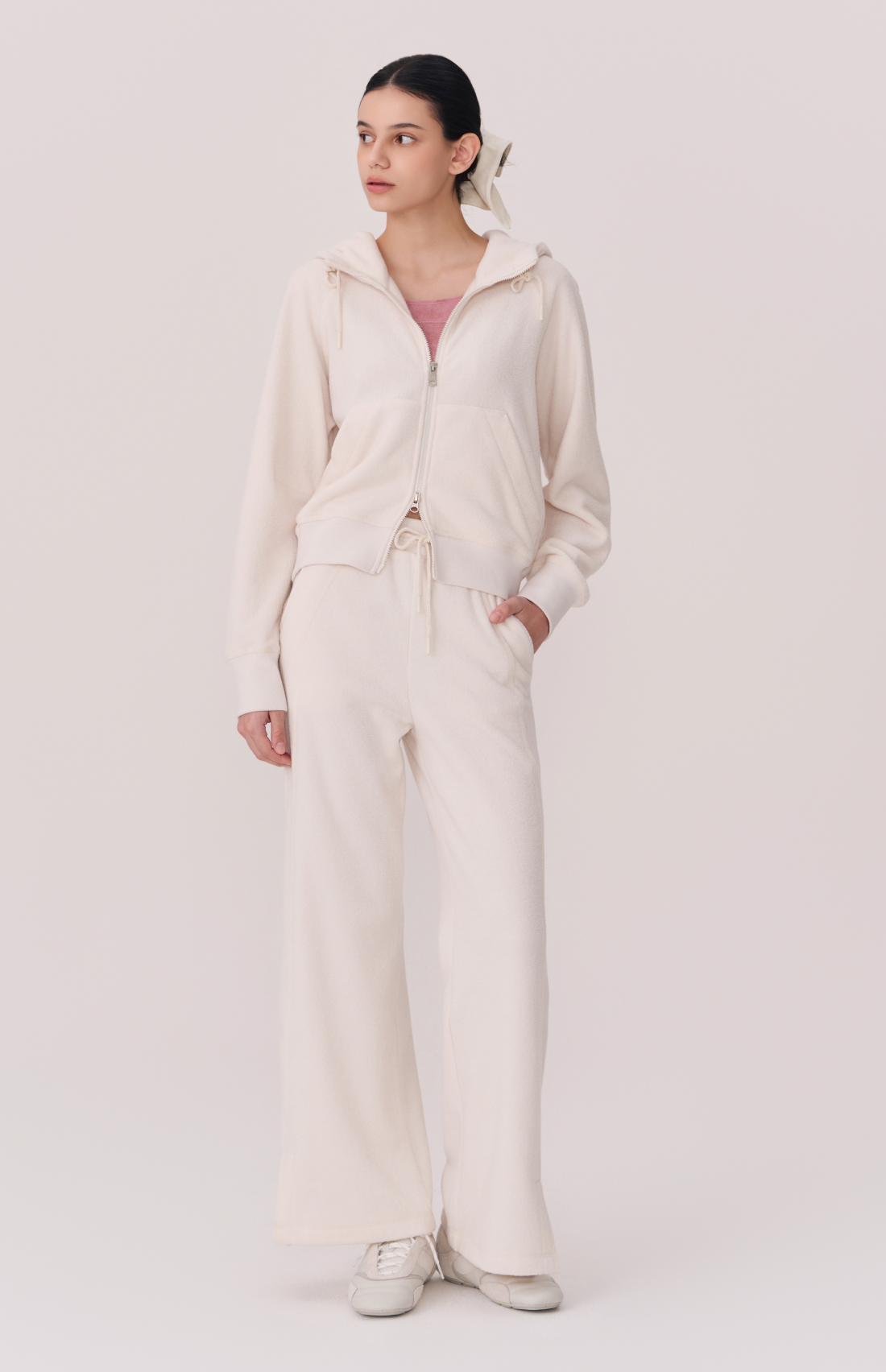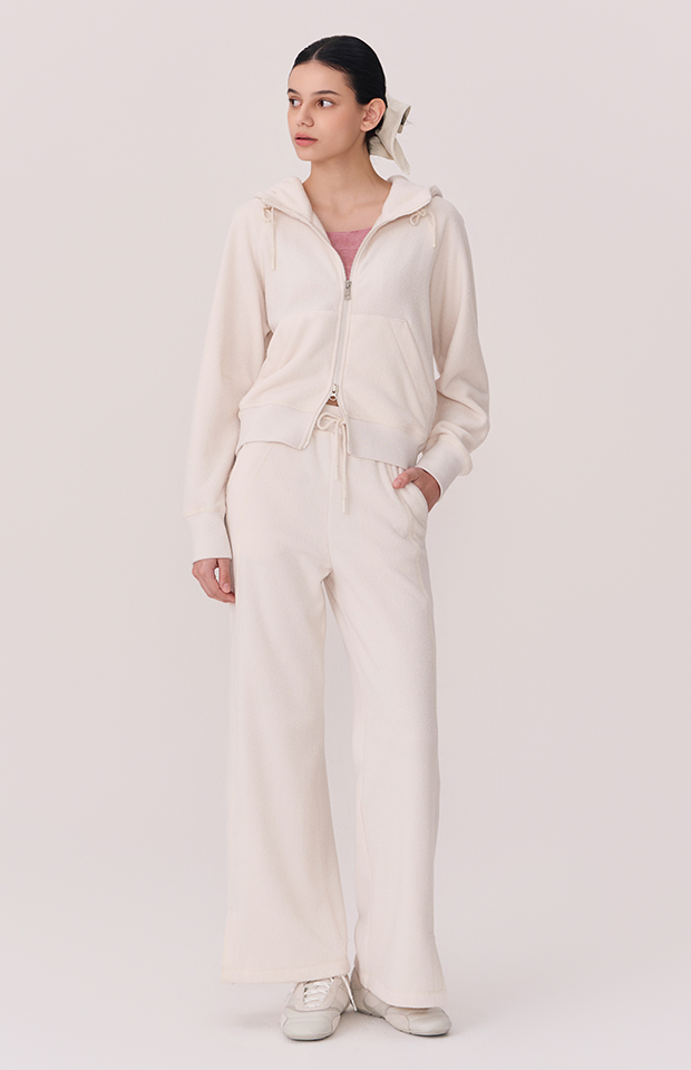 TERRY BRUSHED WIDE-FIT ELASTIC PANTS