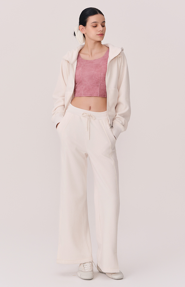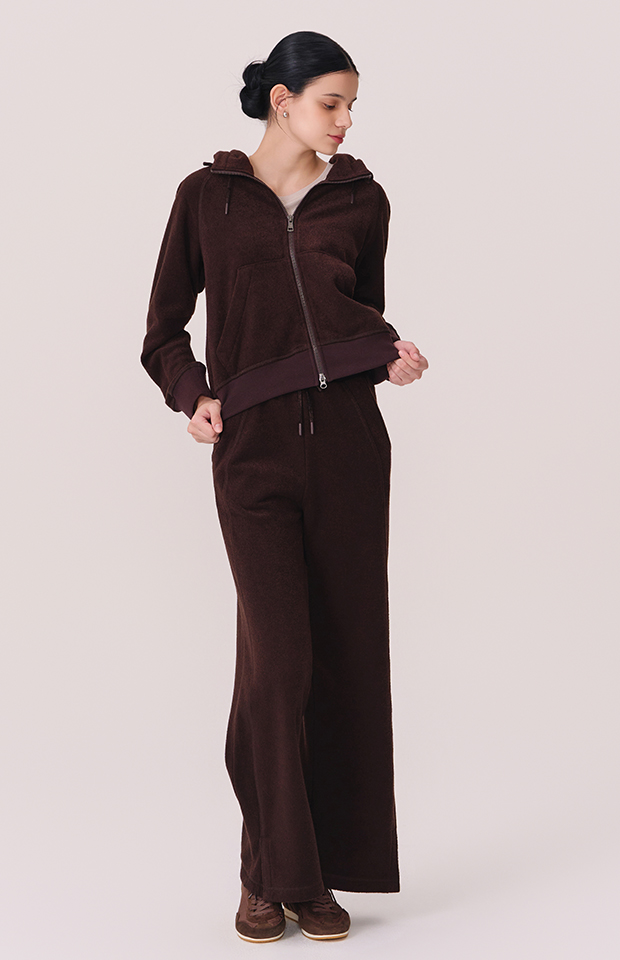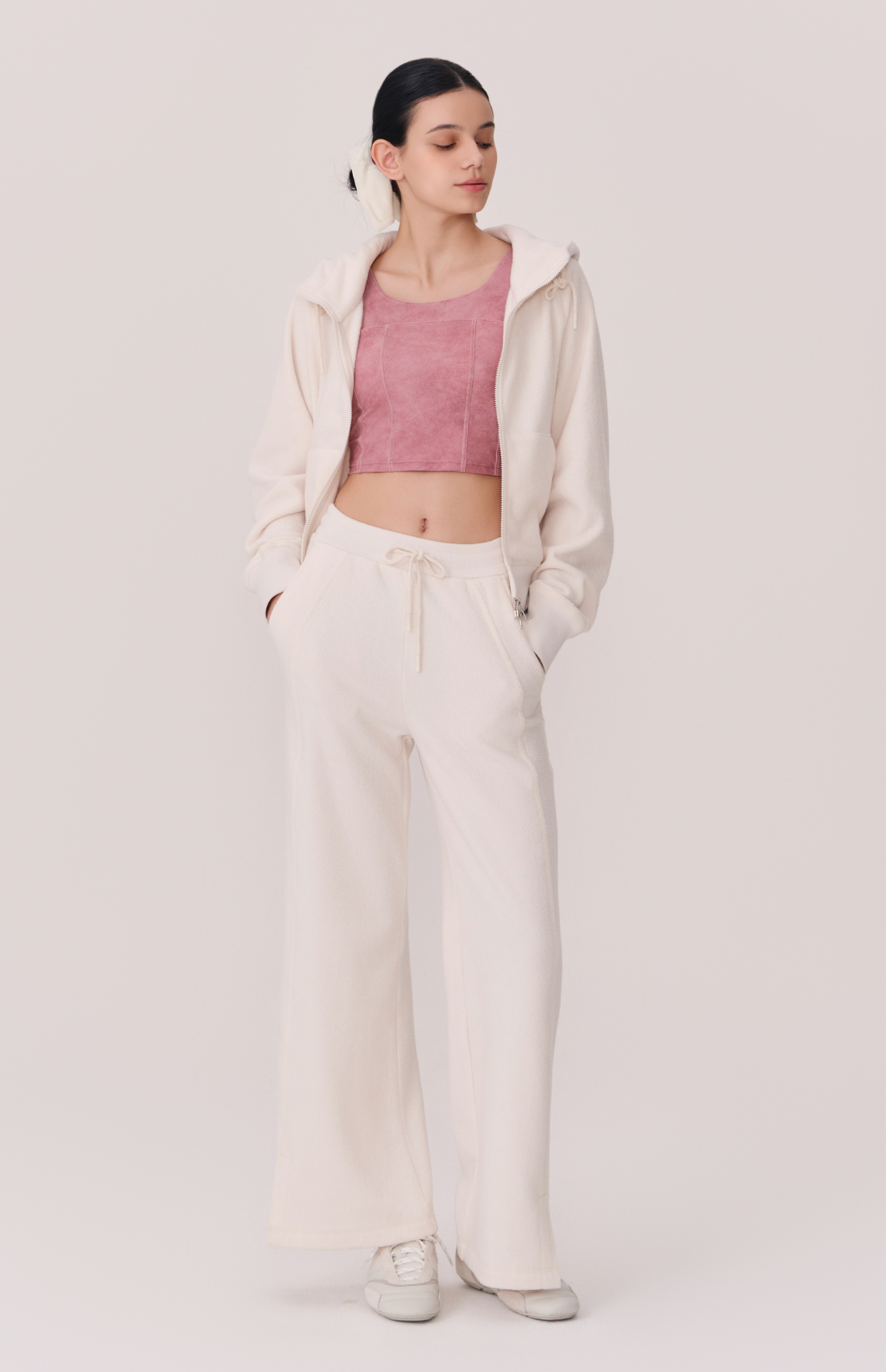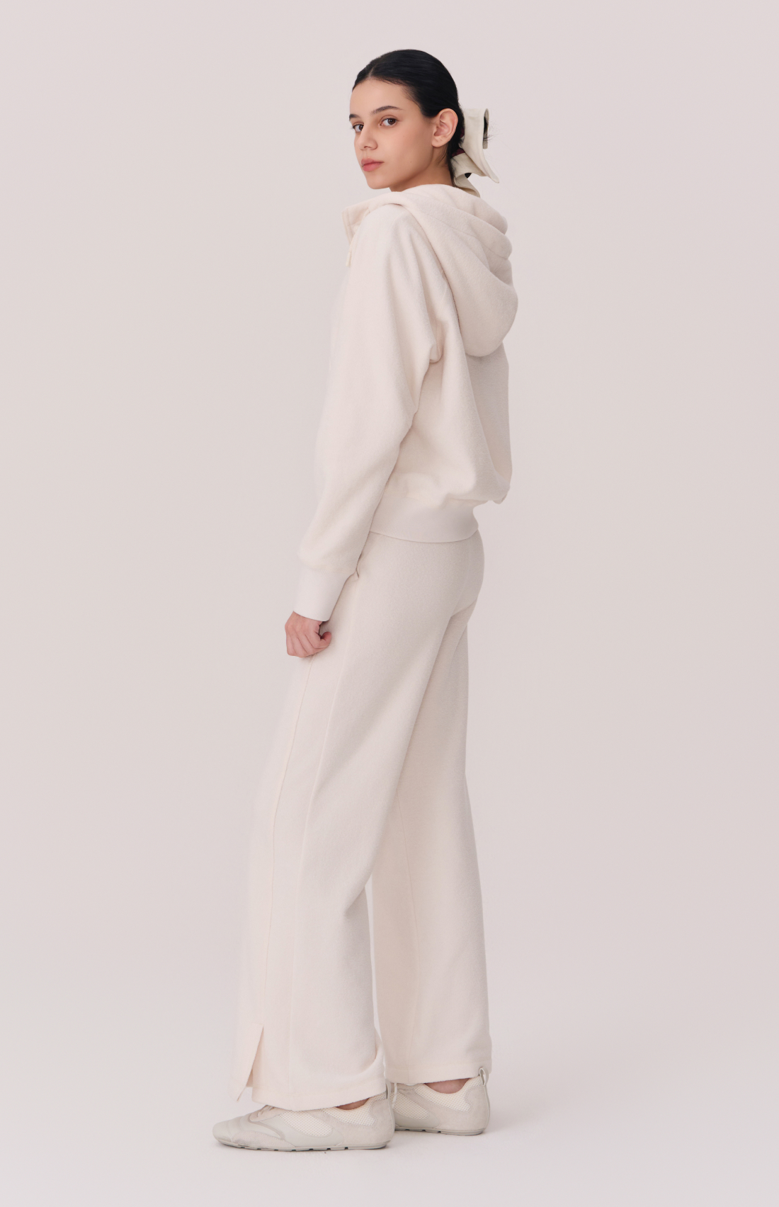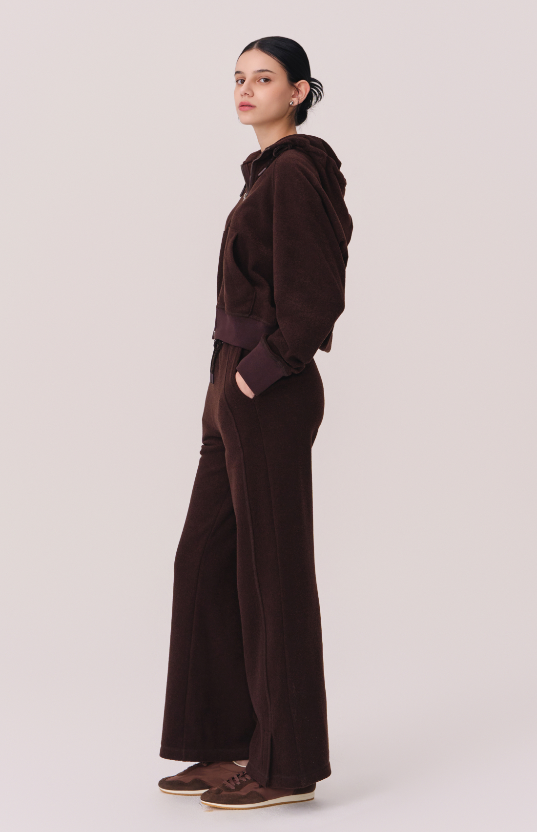 TERRY BRUSHED WIDE-FIT ELASTIC PANTS