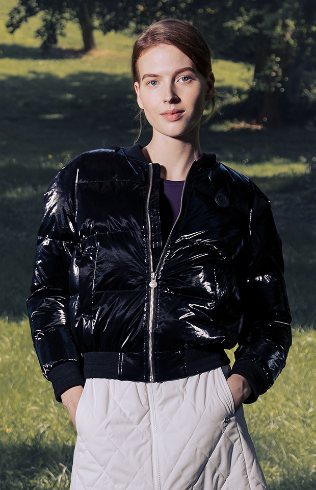 GLOSSY VOLUME SHOULDER GOOSE DOWN JACKET