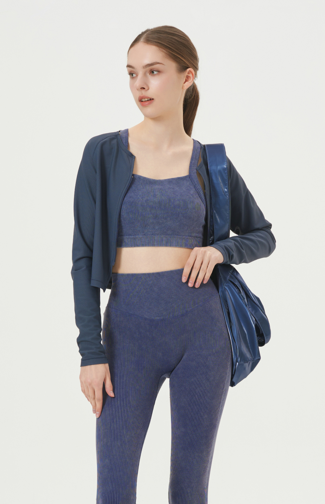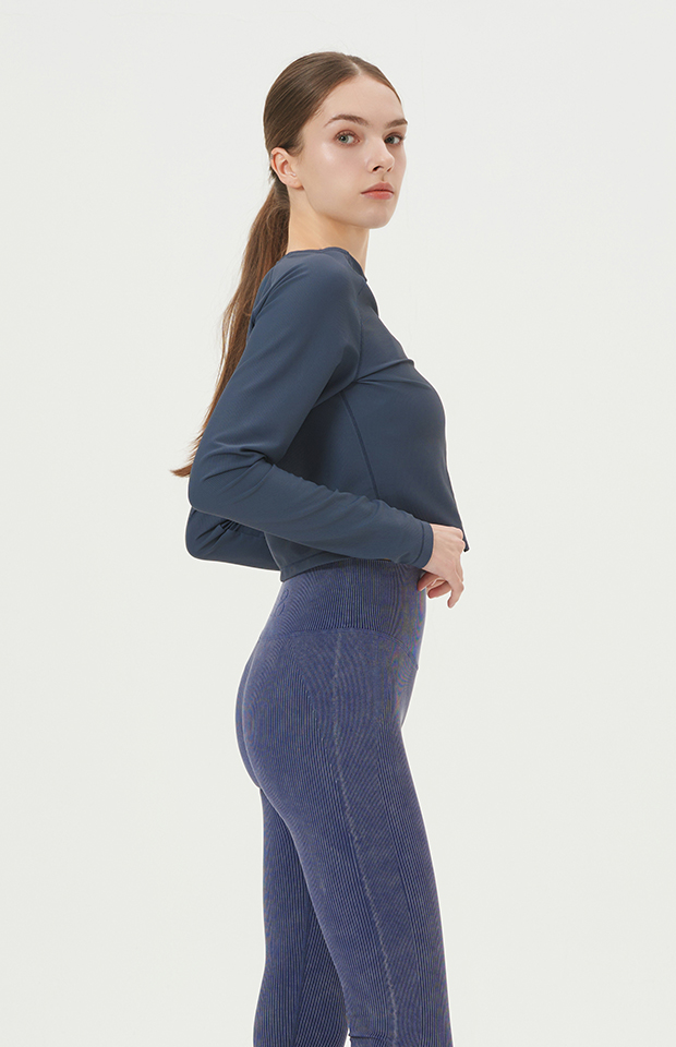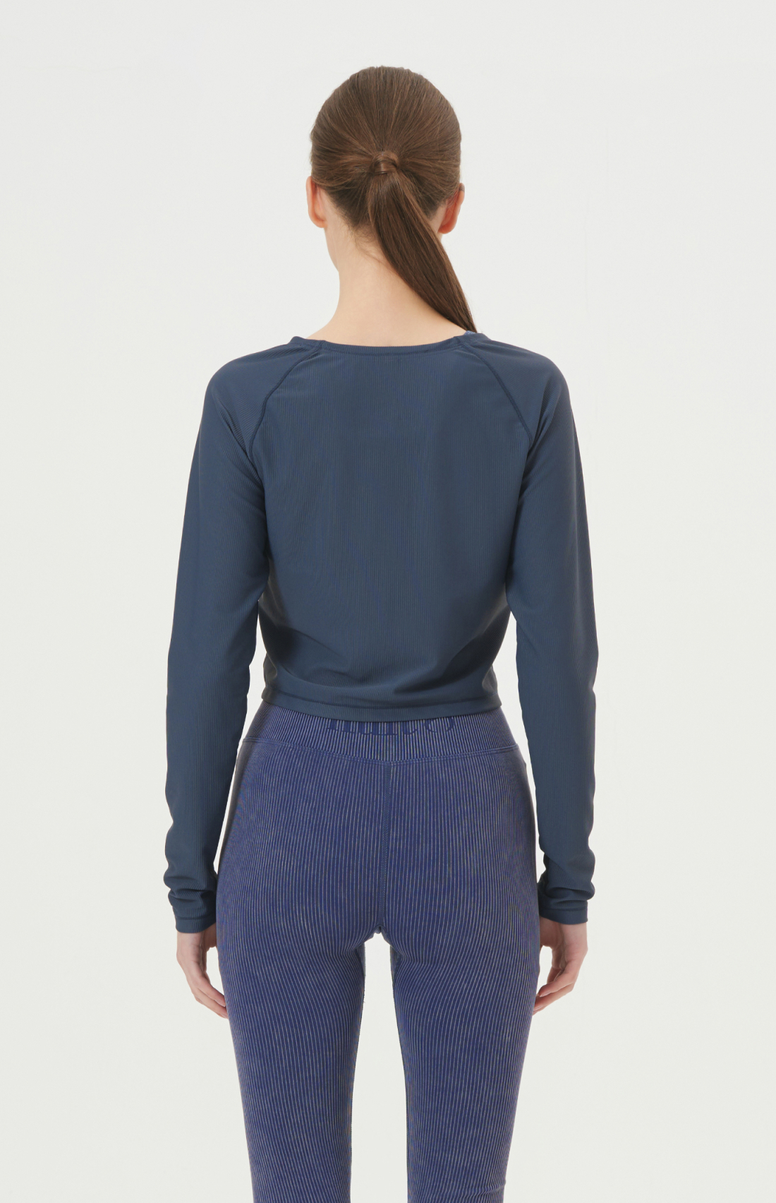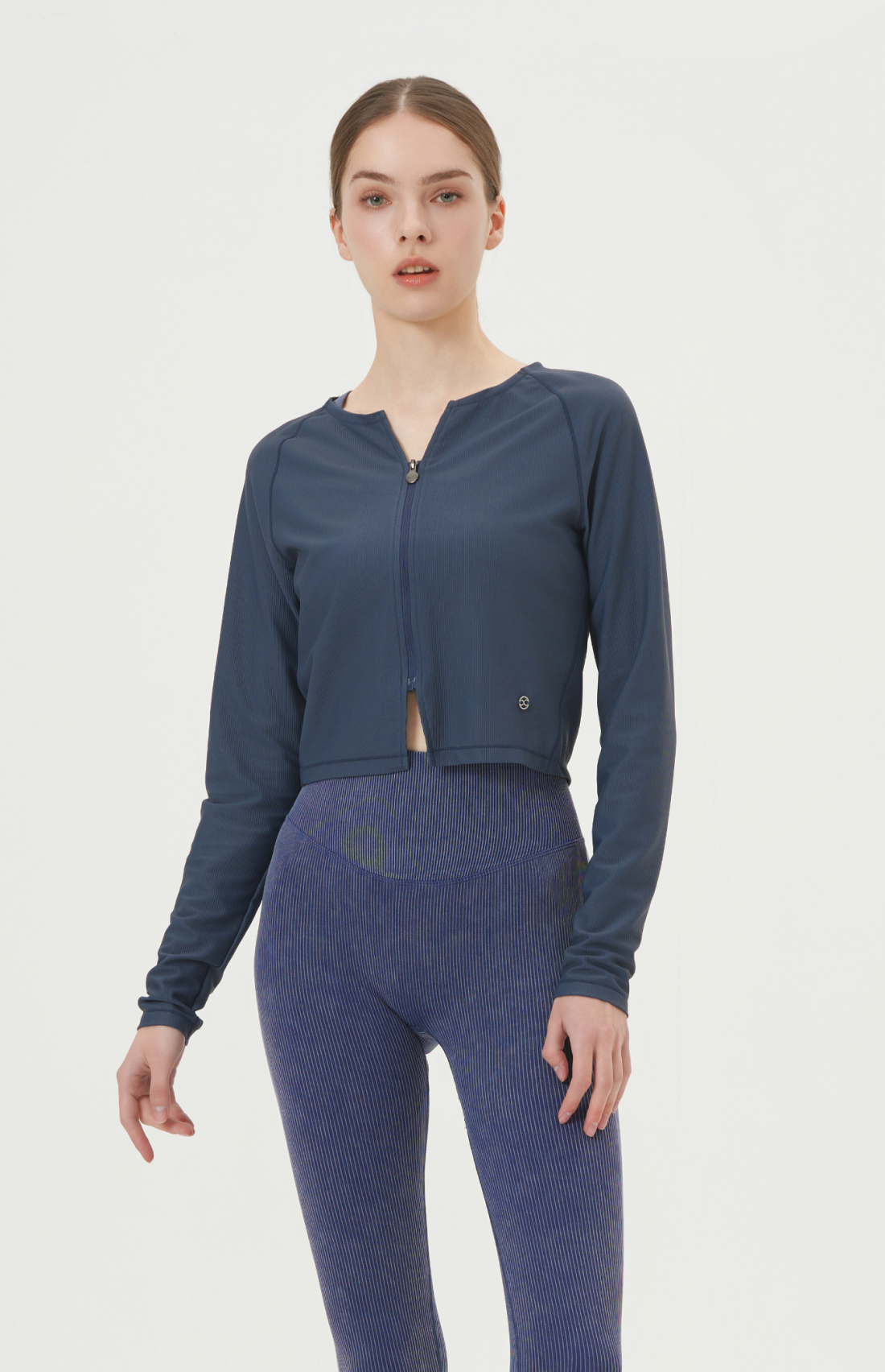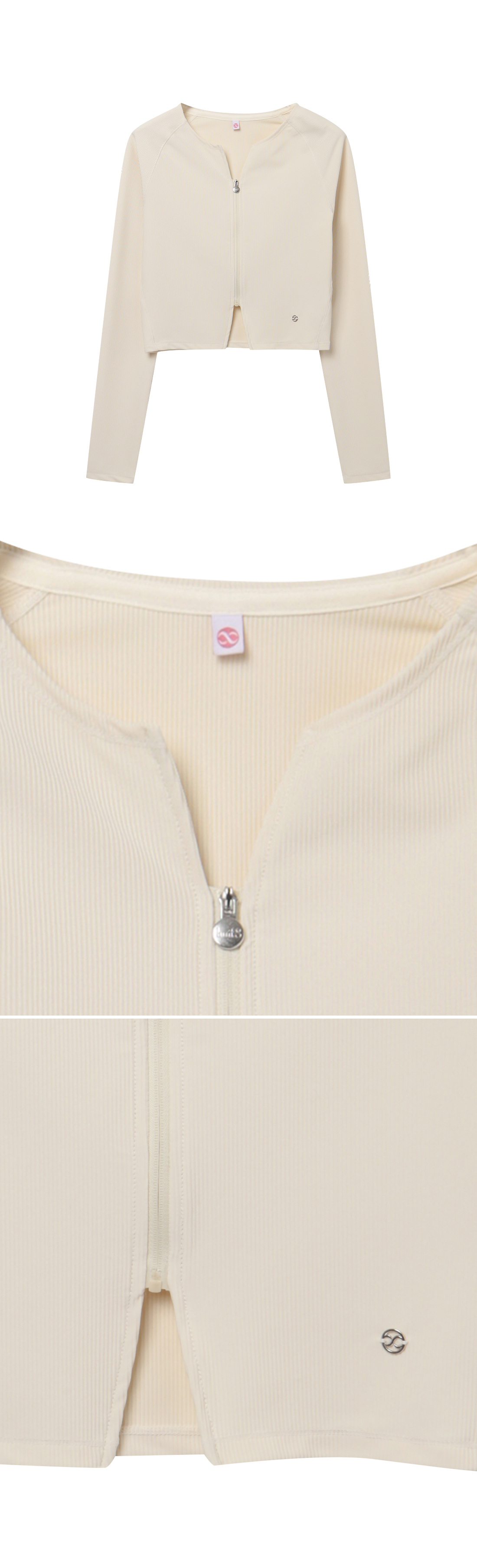RIBBED ZIP-UP CARDIGAN-STYLE LONG-SLEEVE TEE