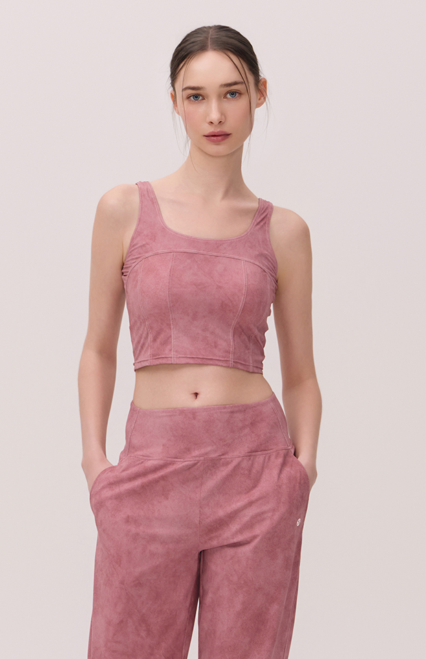 EURO-JERSEY SUEDE PRINT STITCH BRA TOP