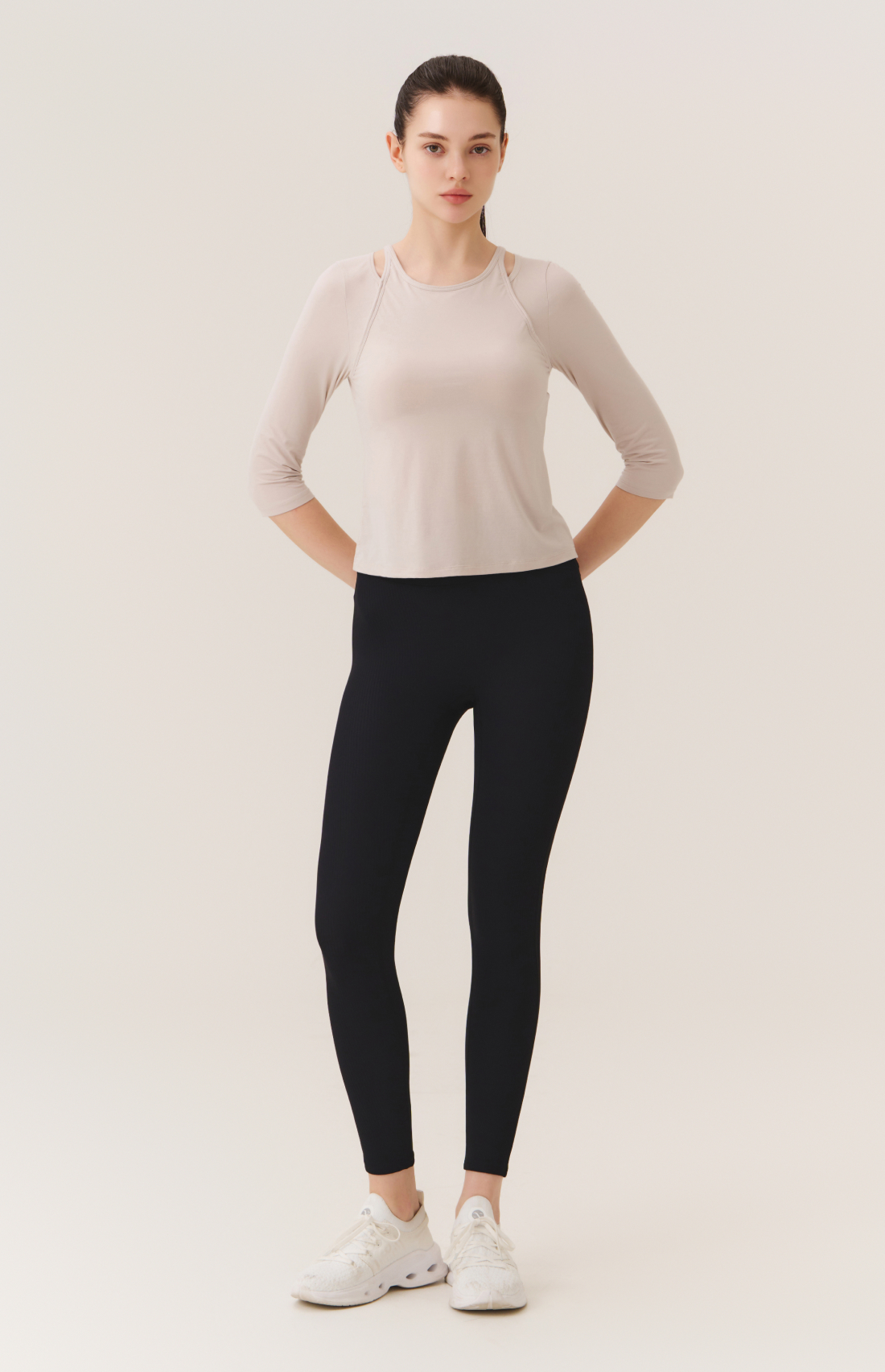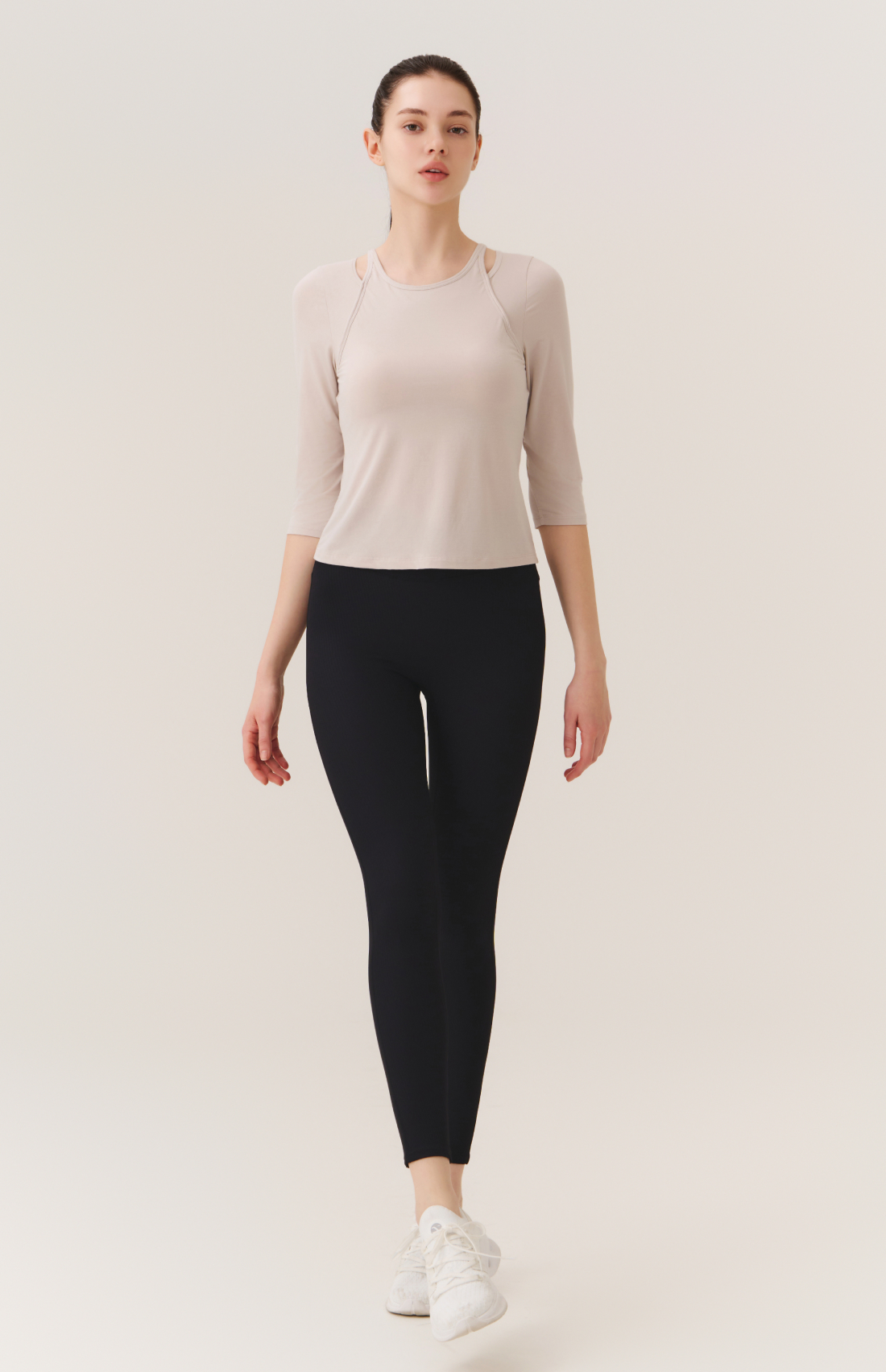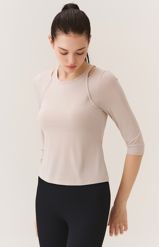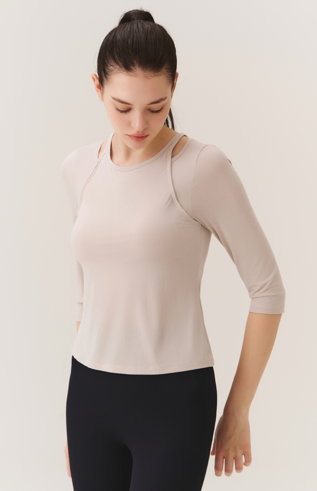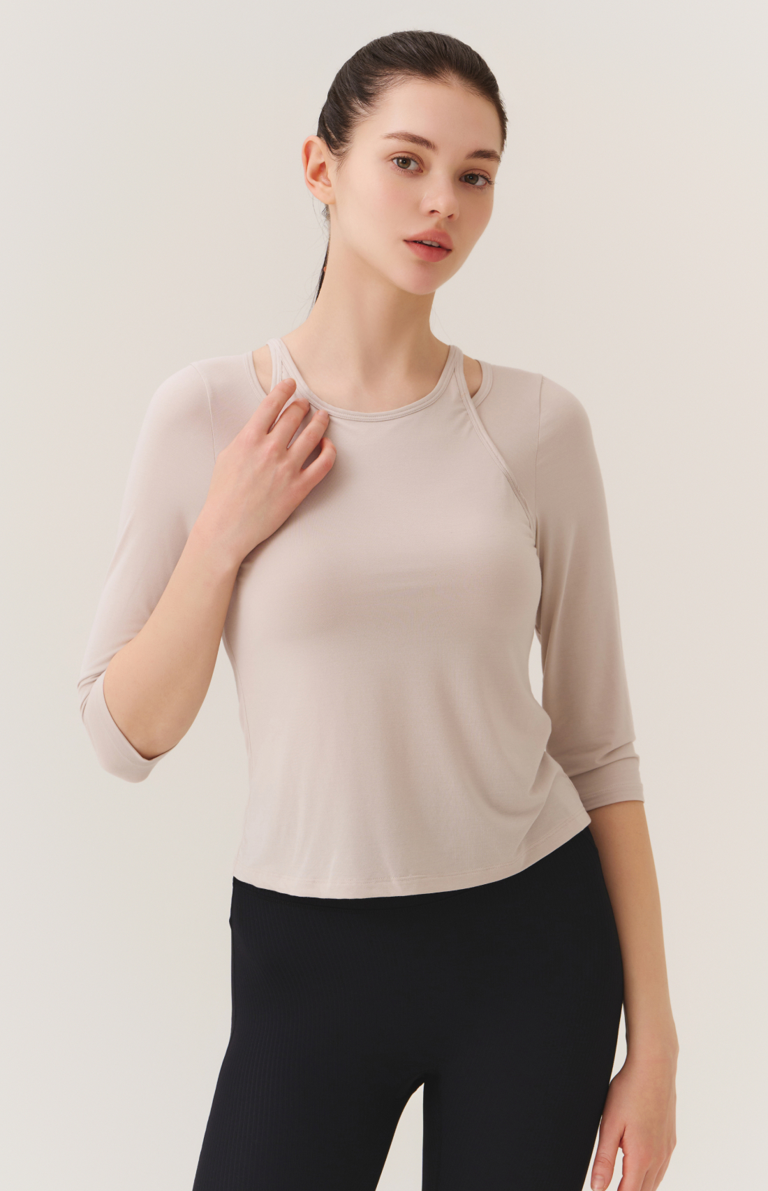 SOFT MODAL LAYERED BUILT-IN BRA 3/4-SLEEVE TEE