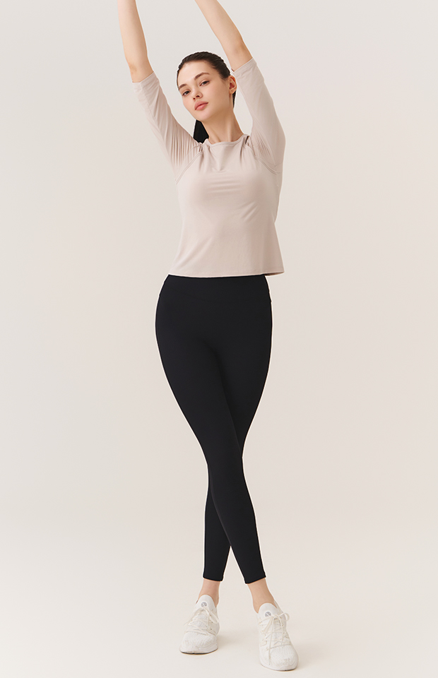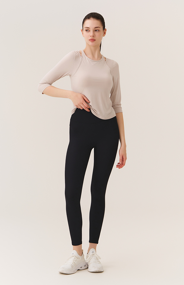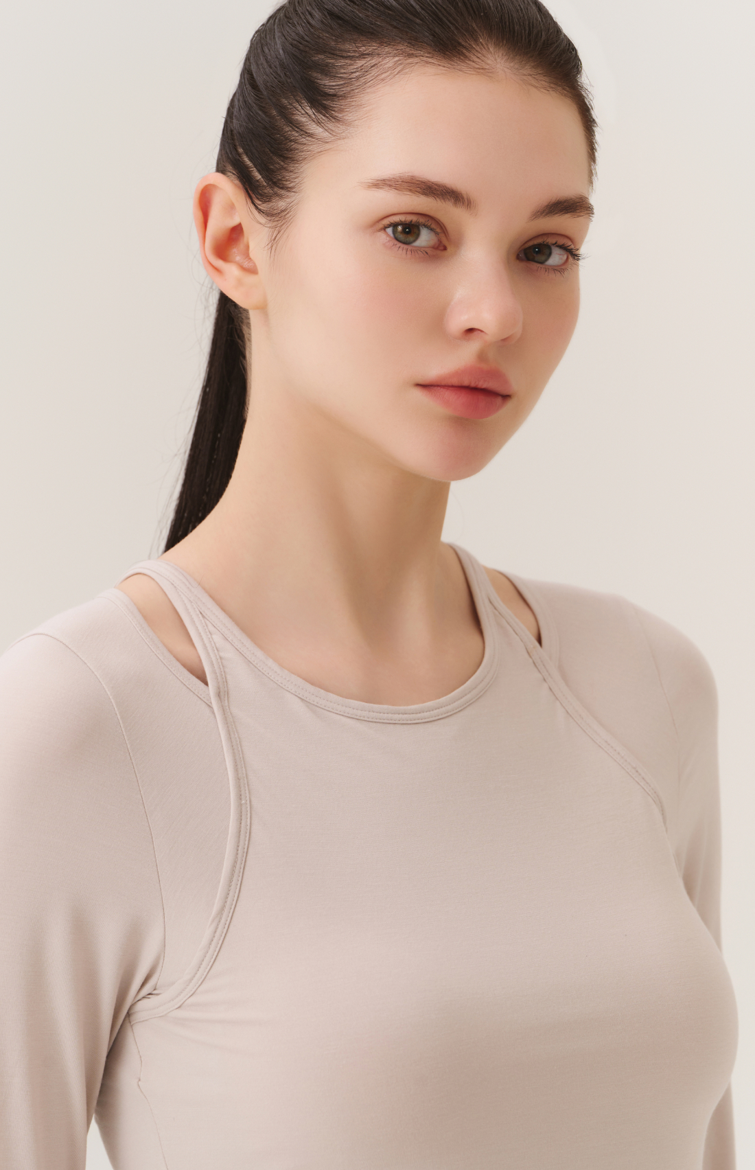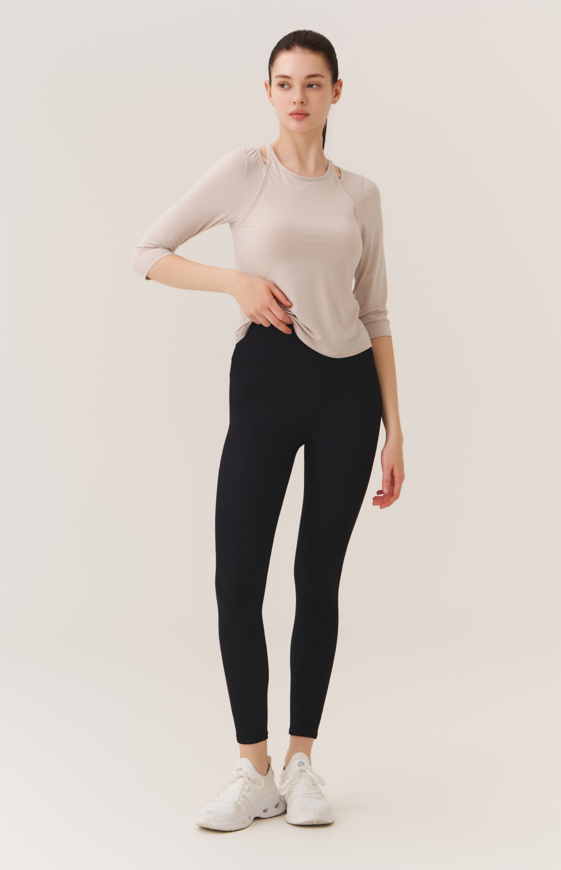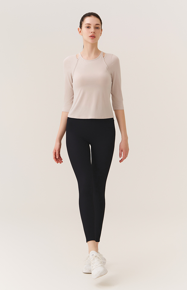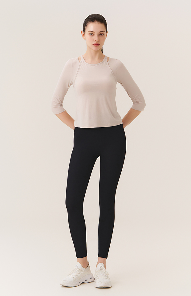 SOFT MODAL LAYERED BUILT-IN BRA 3/4-SLEEVE TEE