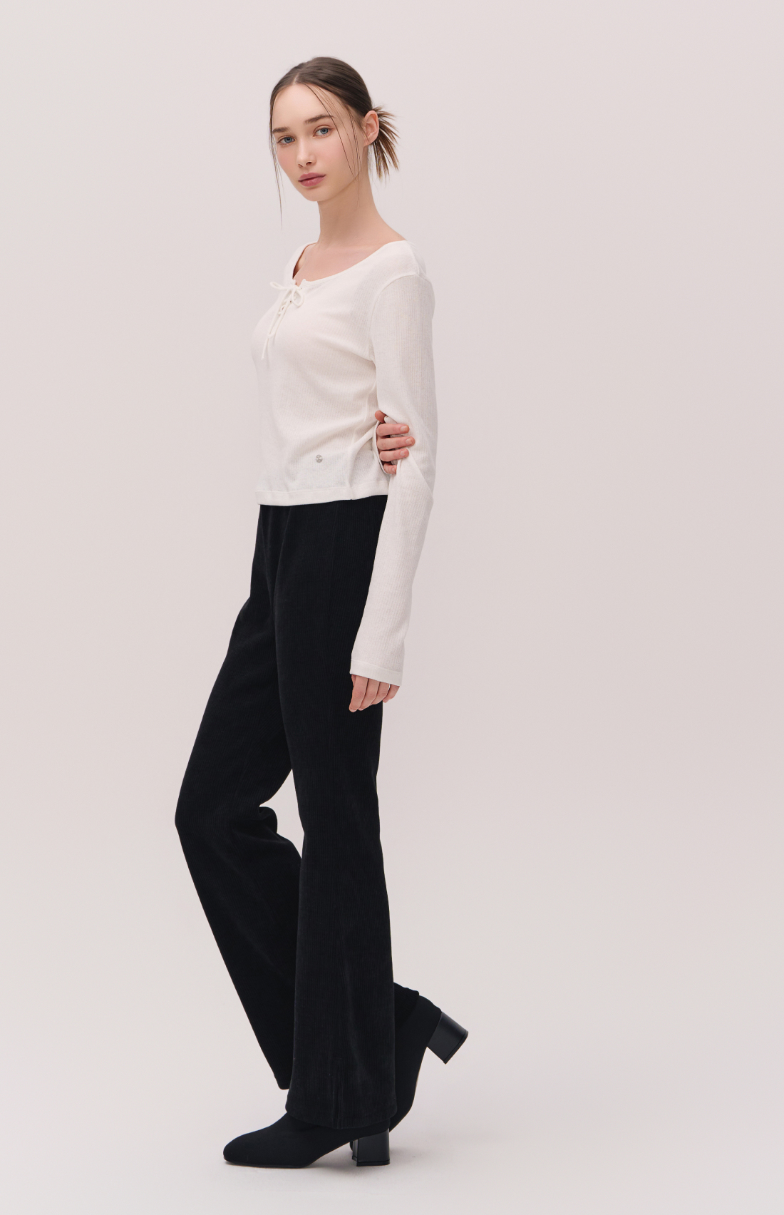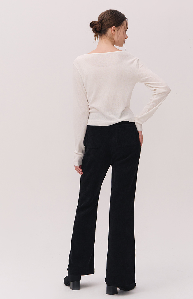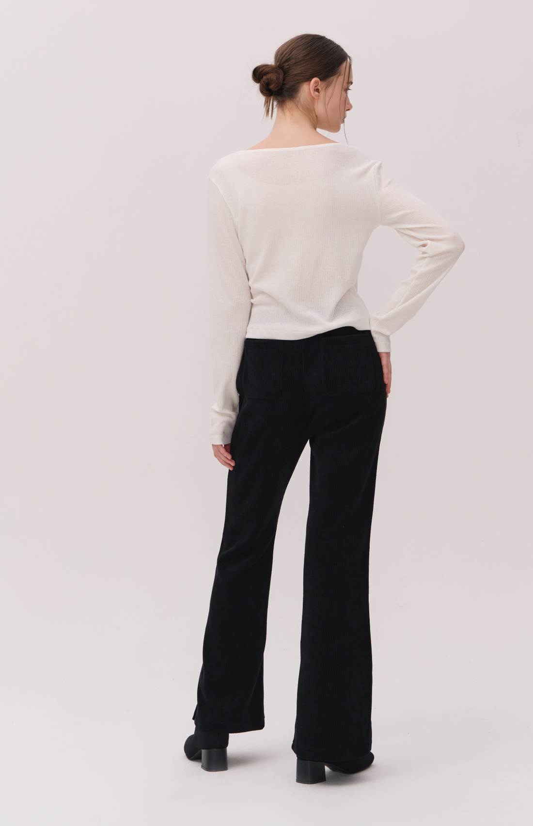 WIDE-RIB VELVET BOOTCUT INNER-BAND PANTS