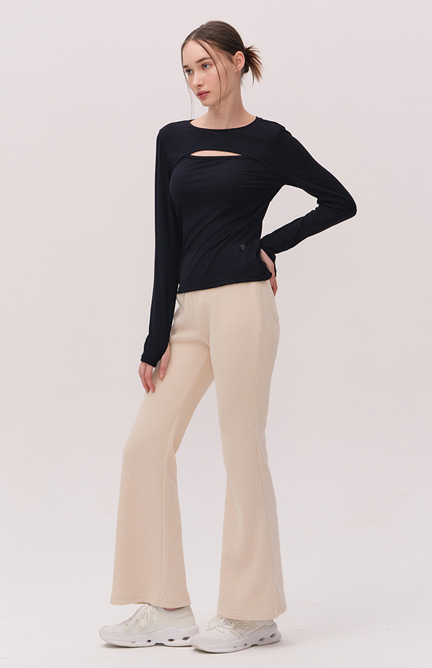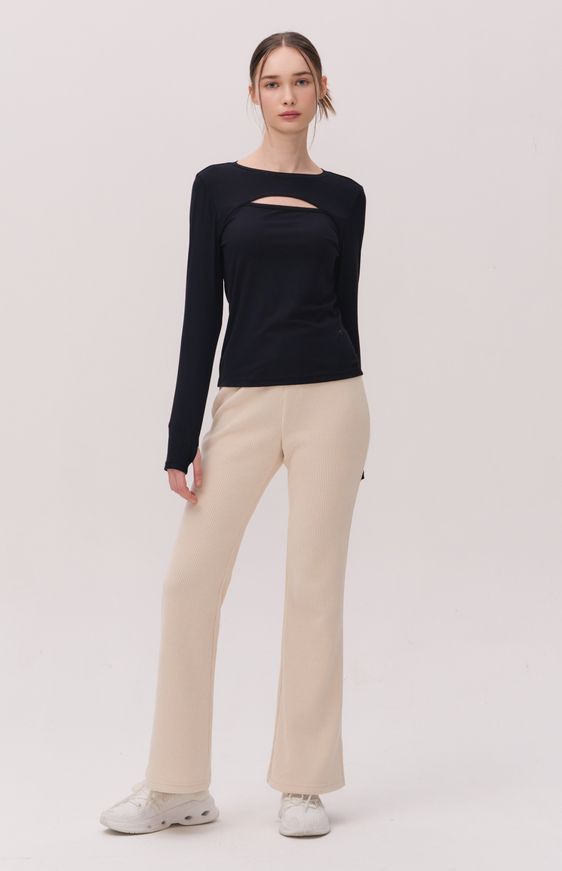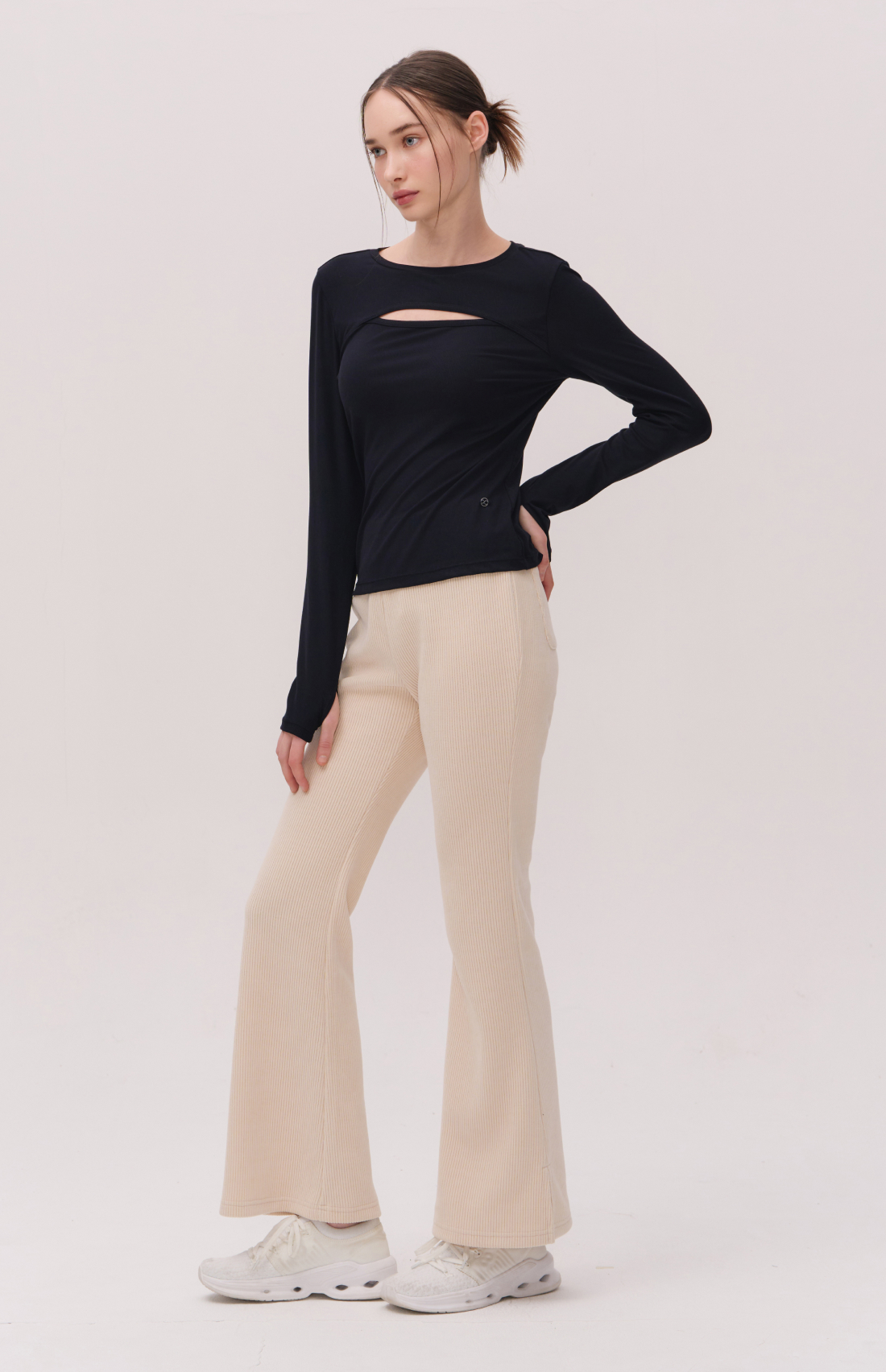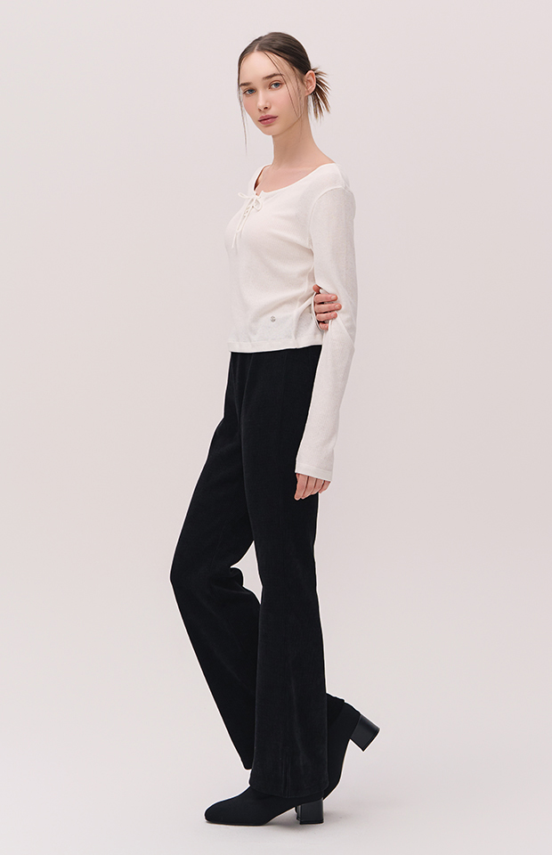 WIDE-RIB VELVET BOOTCUT INNER-BAND PANTS