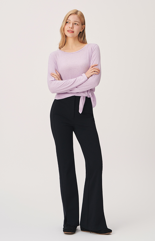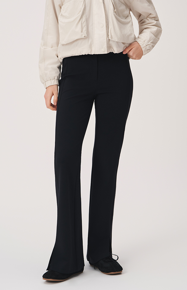 BRUSHED FRONT-SLIT BOOTCUT PANTS