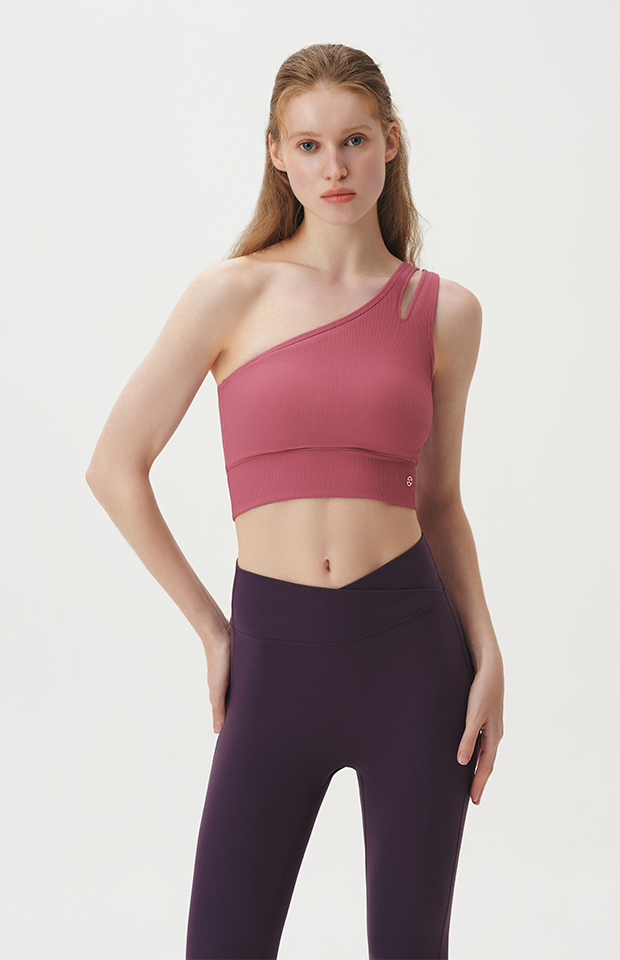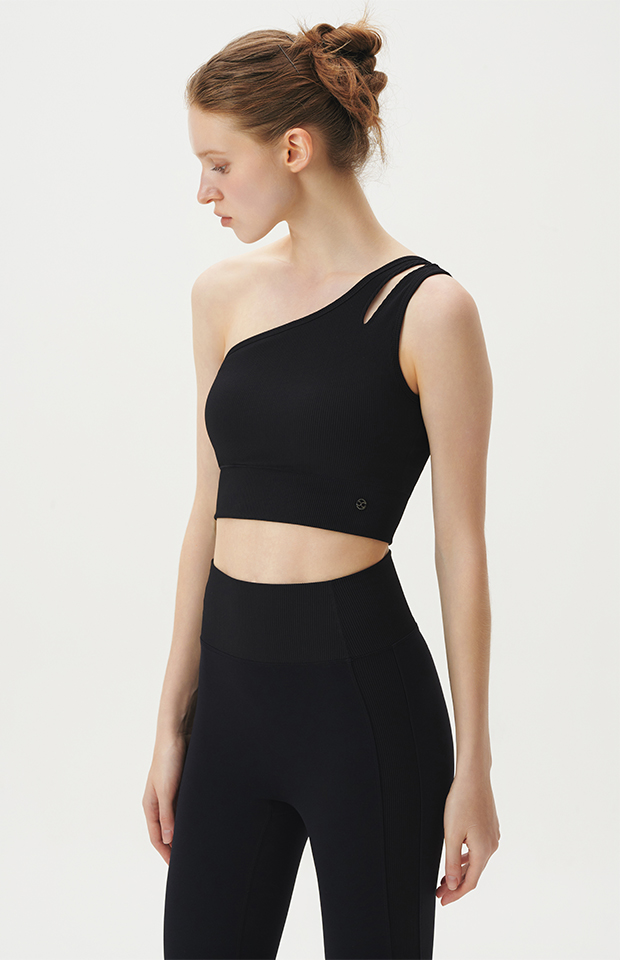 RIBBED ONE SHOULDER HOLE LINE BRA TOP