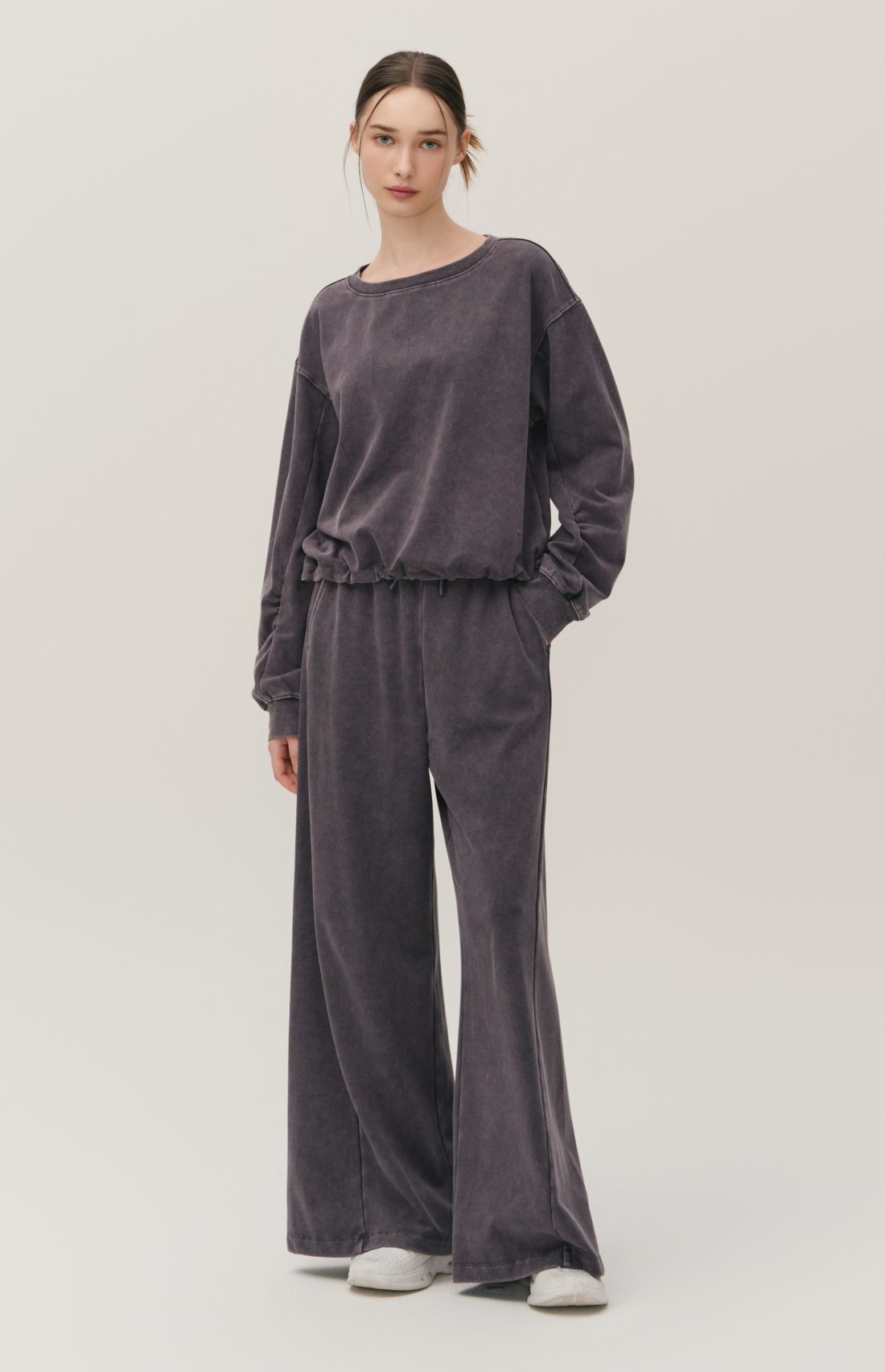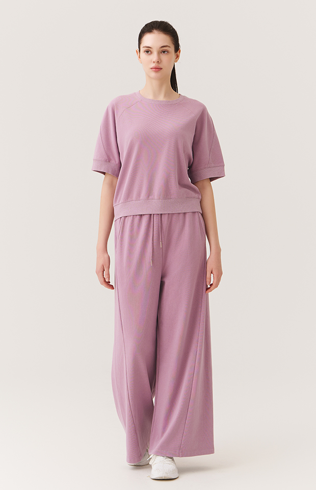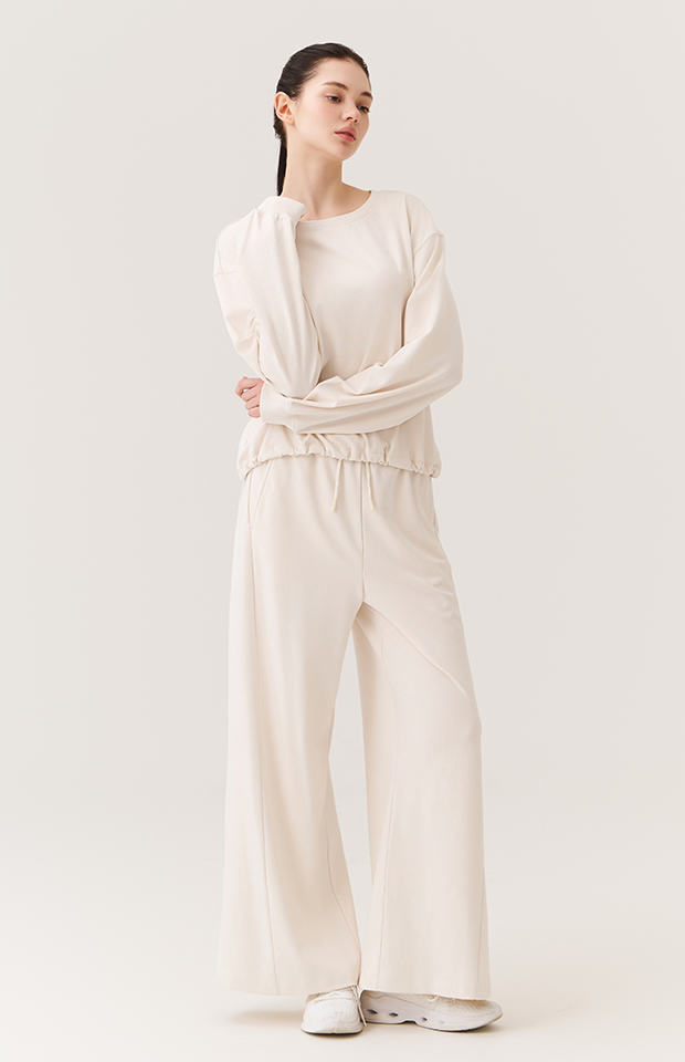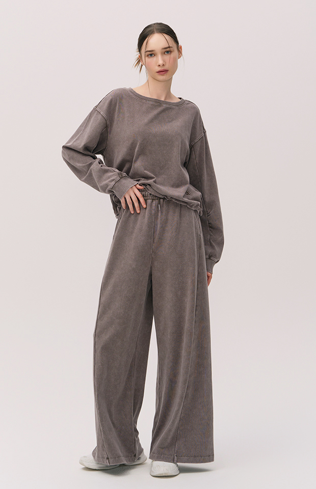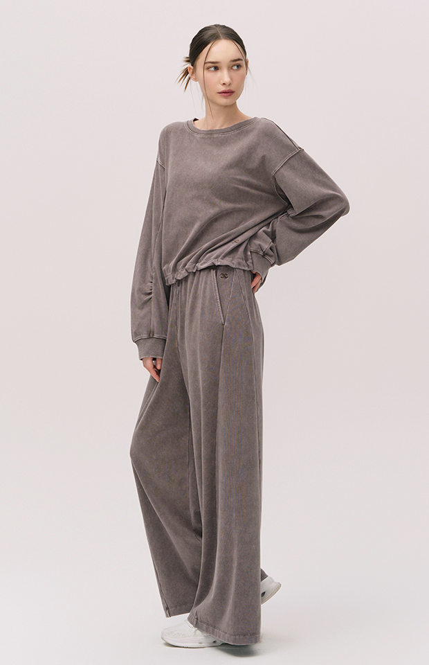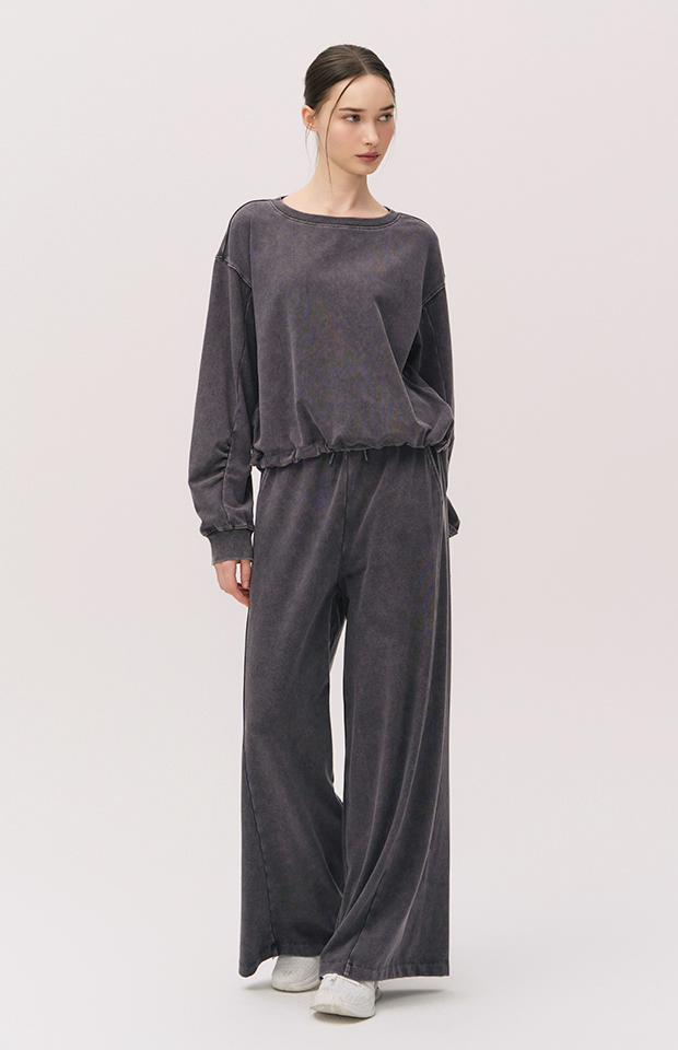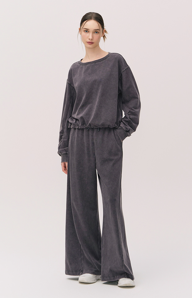 WASHED CUT-LINE WIDE-FIT ELASTIC PANTS