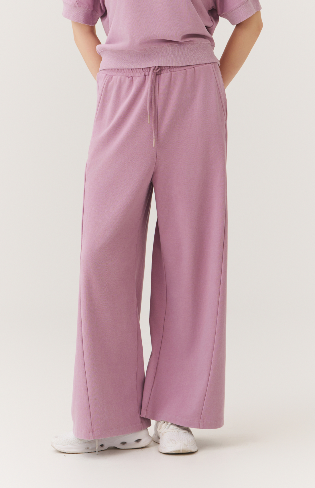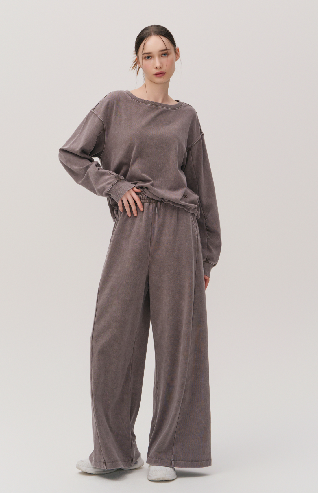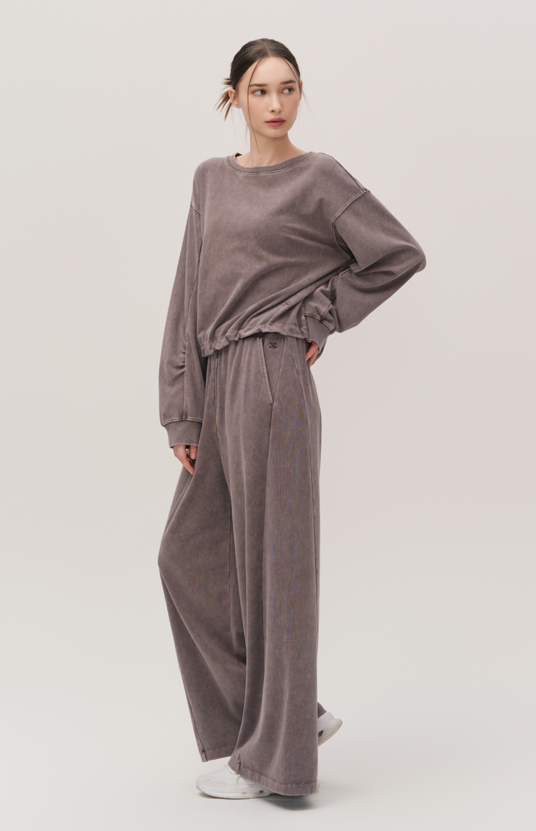 WASHED CUT-LINE WIDE-FIT ELASTIC PANTS