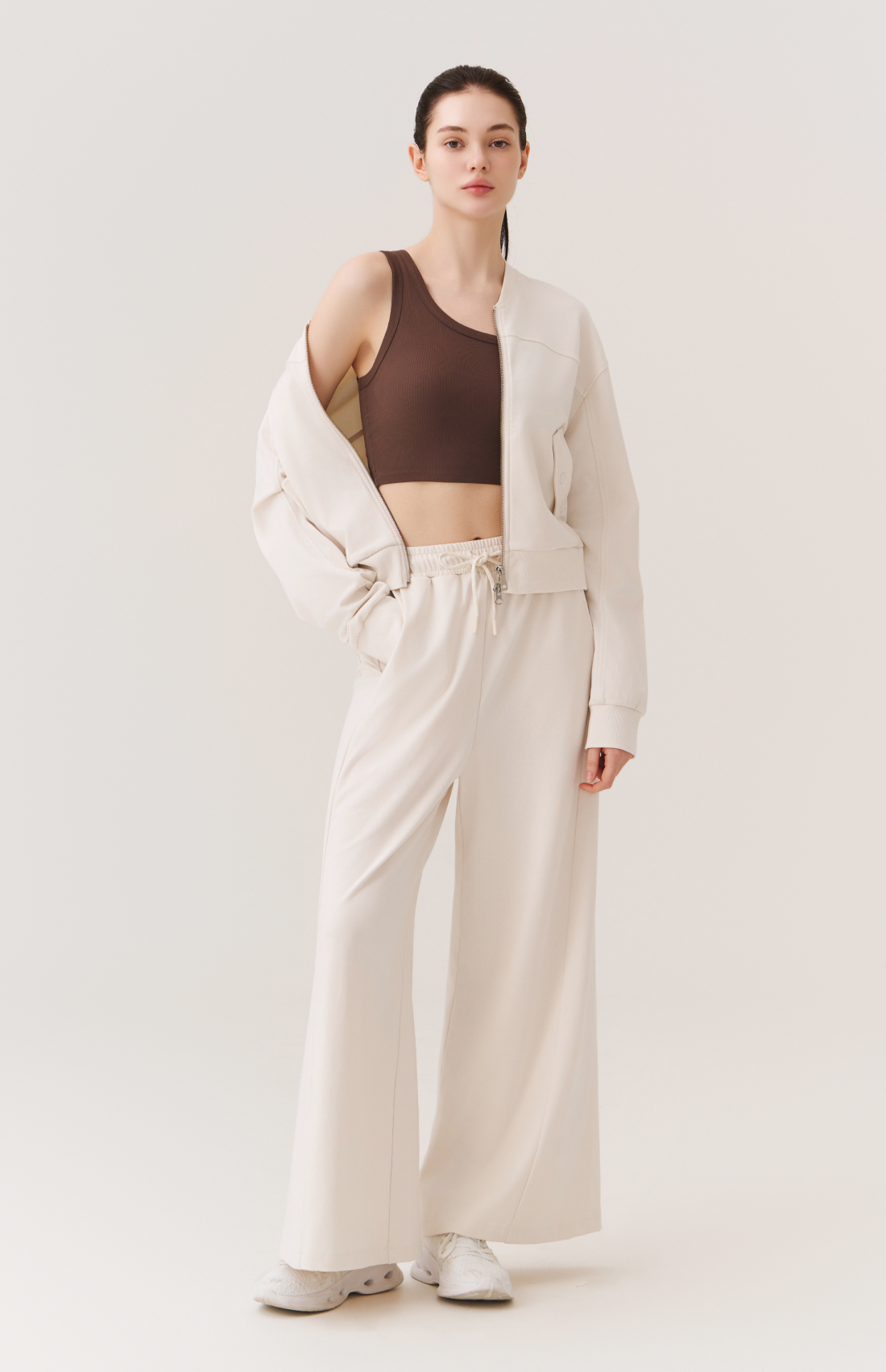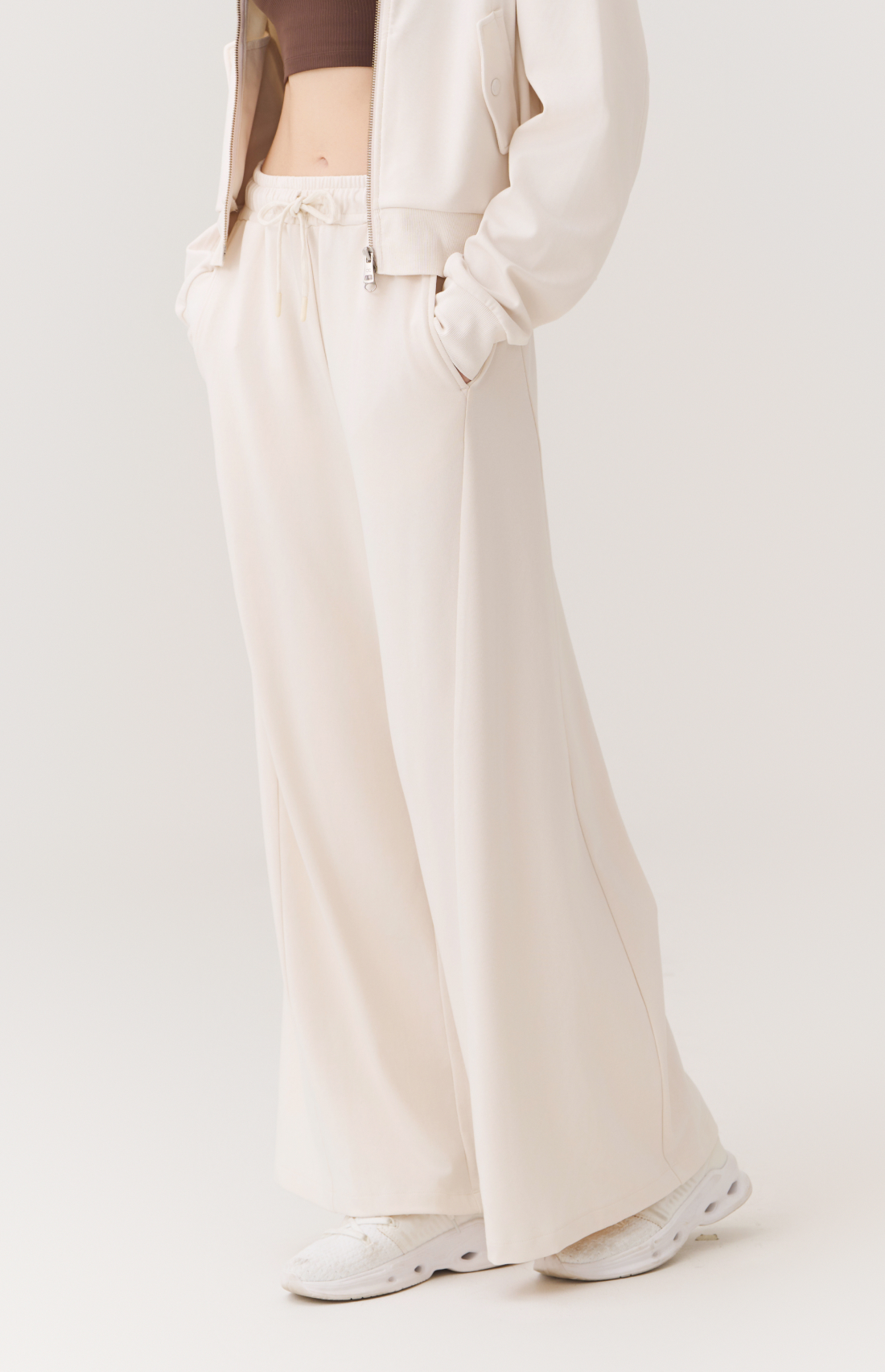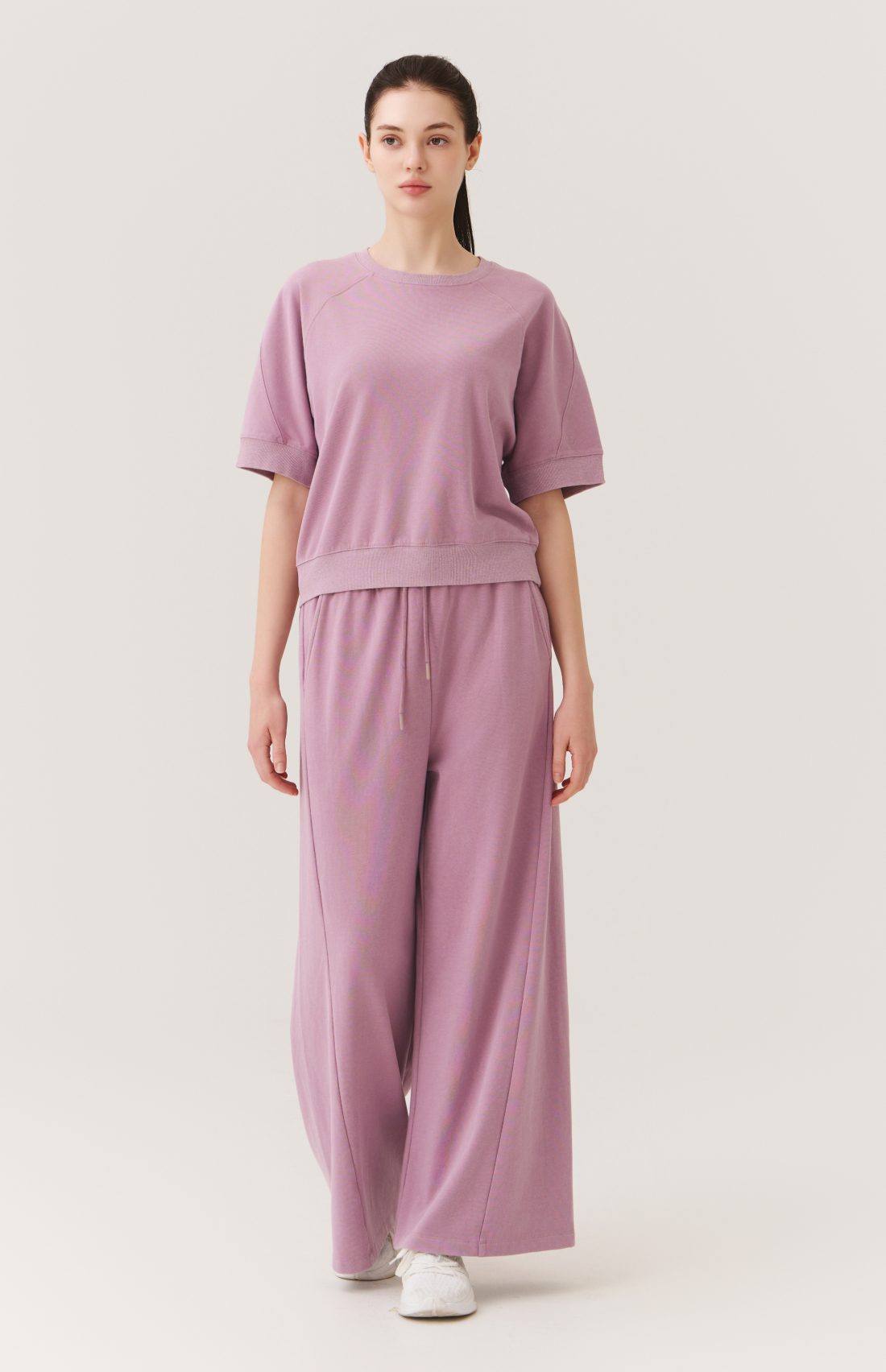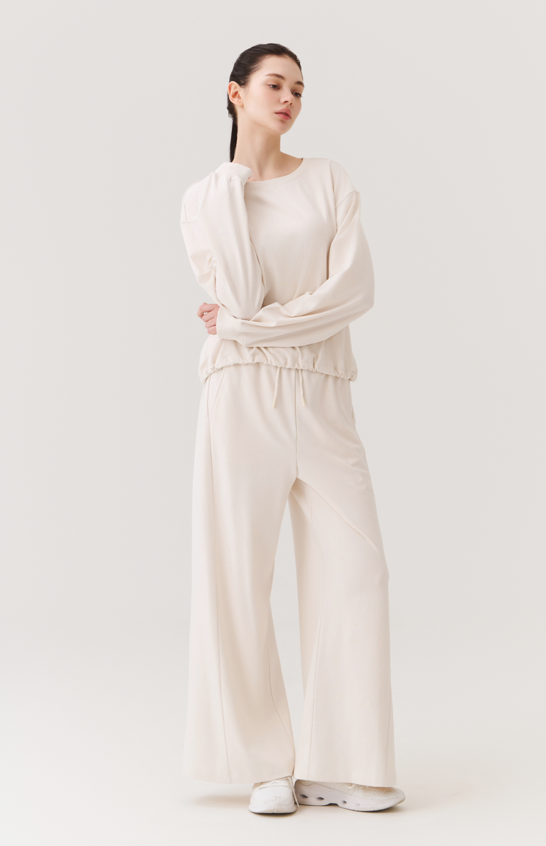 WASHED CUT-LINE WIDE-FIT ELASTIC PANTS