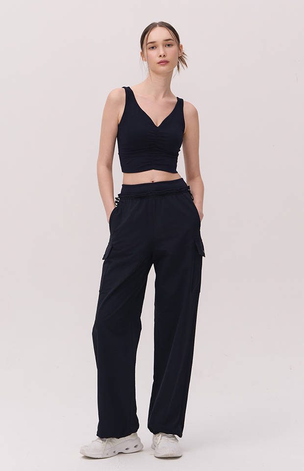 BRUSHED DOUBLE-WAIST PARACHUTE PANTS