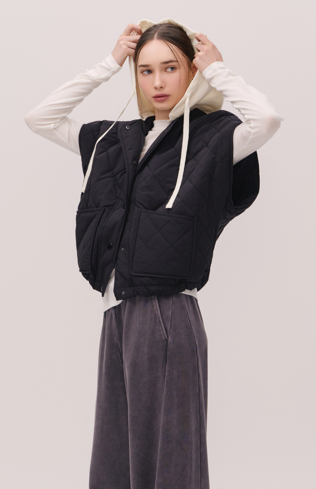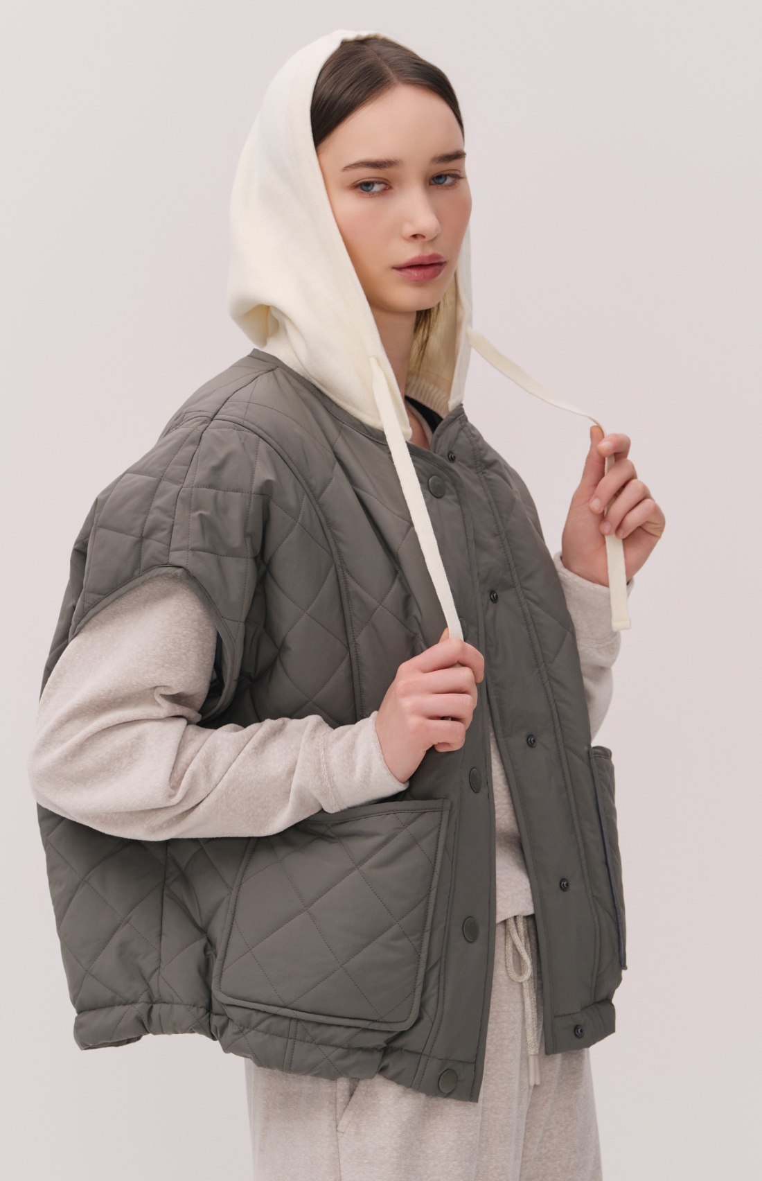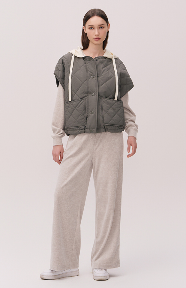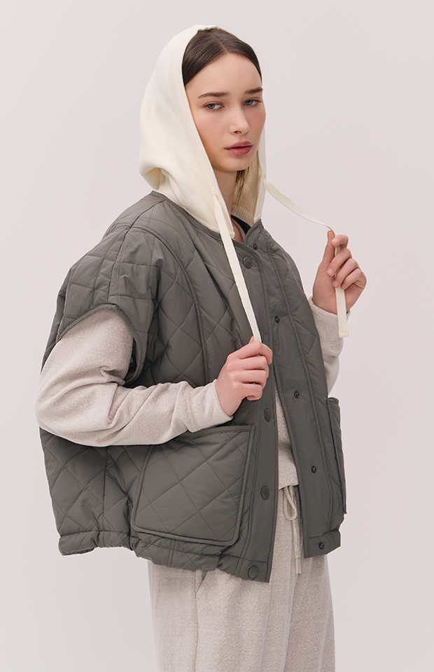 PONCHO-STYLE KNIT HOODED PUFFER JACKET