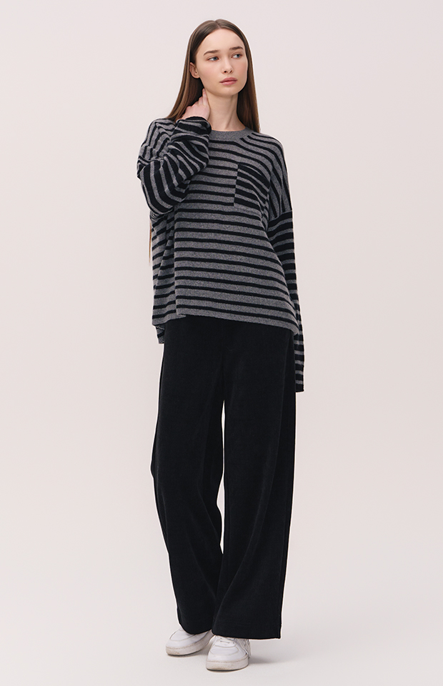 WIDE-RIB VELVET WIDE-FIT ELASTIC PANTS