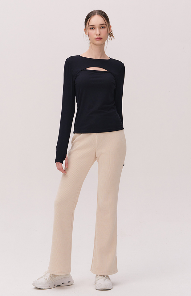 WIDE-RIB VELVET BOOTCUT INNER-BAND PANTS