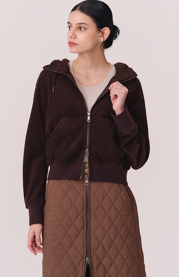 TERRY BRUSHED HOODED ZIP-UP JACKET